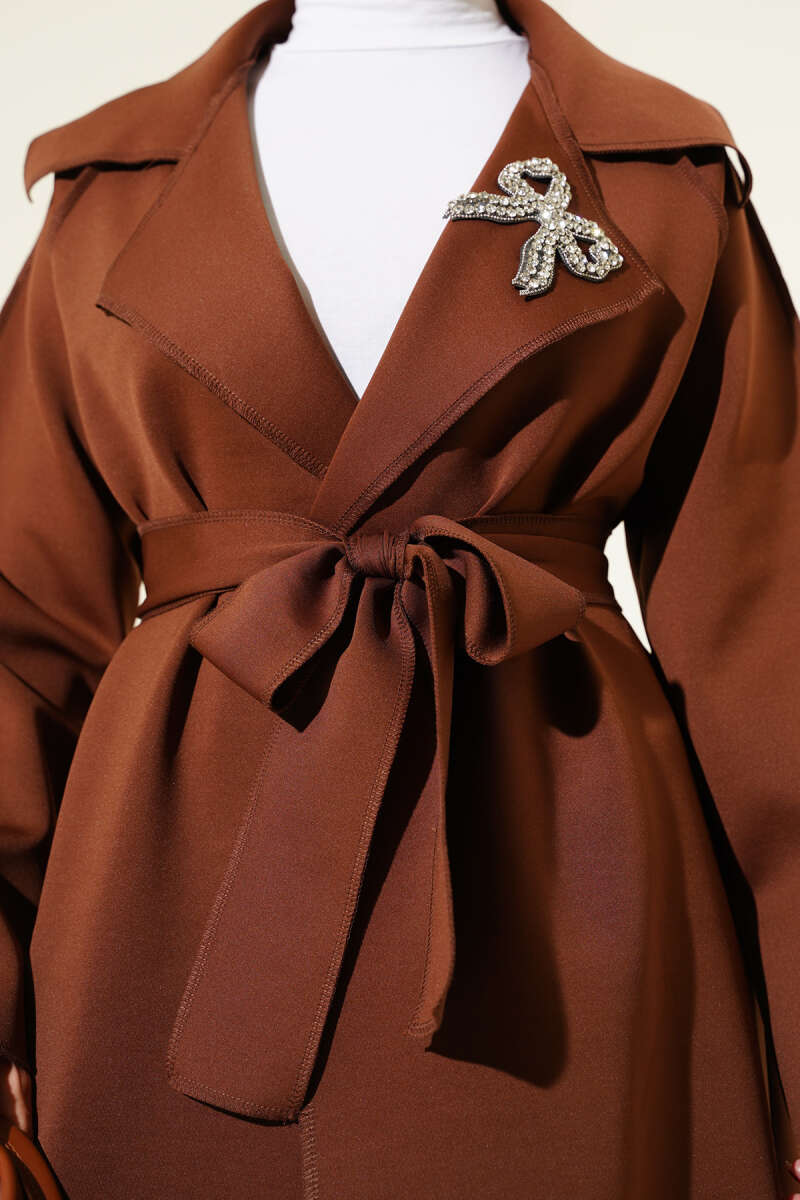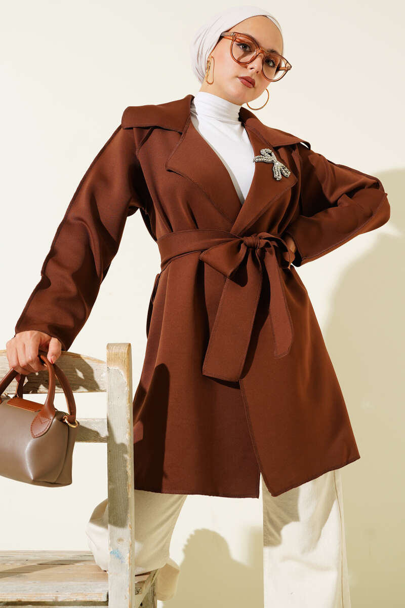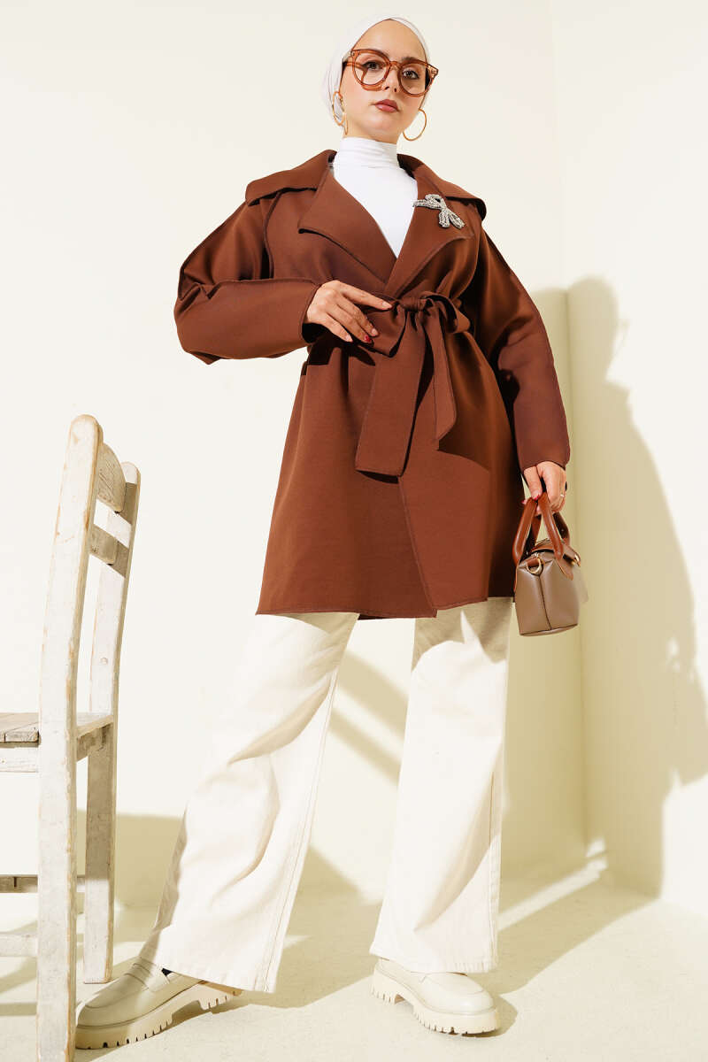 Fiyonk Bronşlu Ters Dikiş Detaylı Ceket Kahve