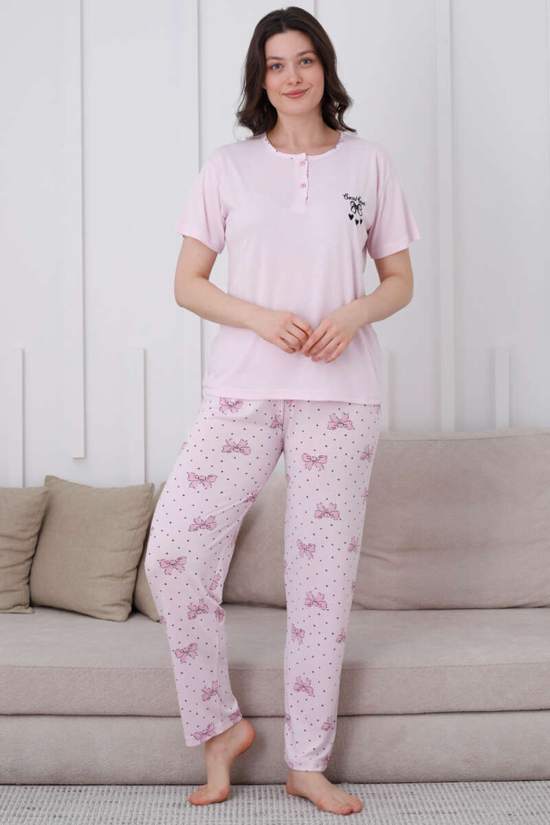 Fiyonk Desen Düğmeli Pijama Takım Pembe