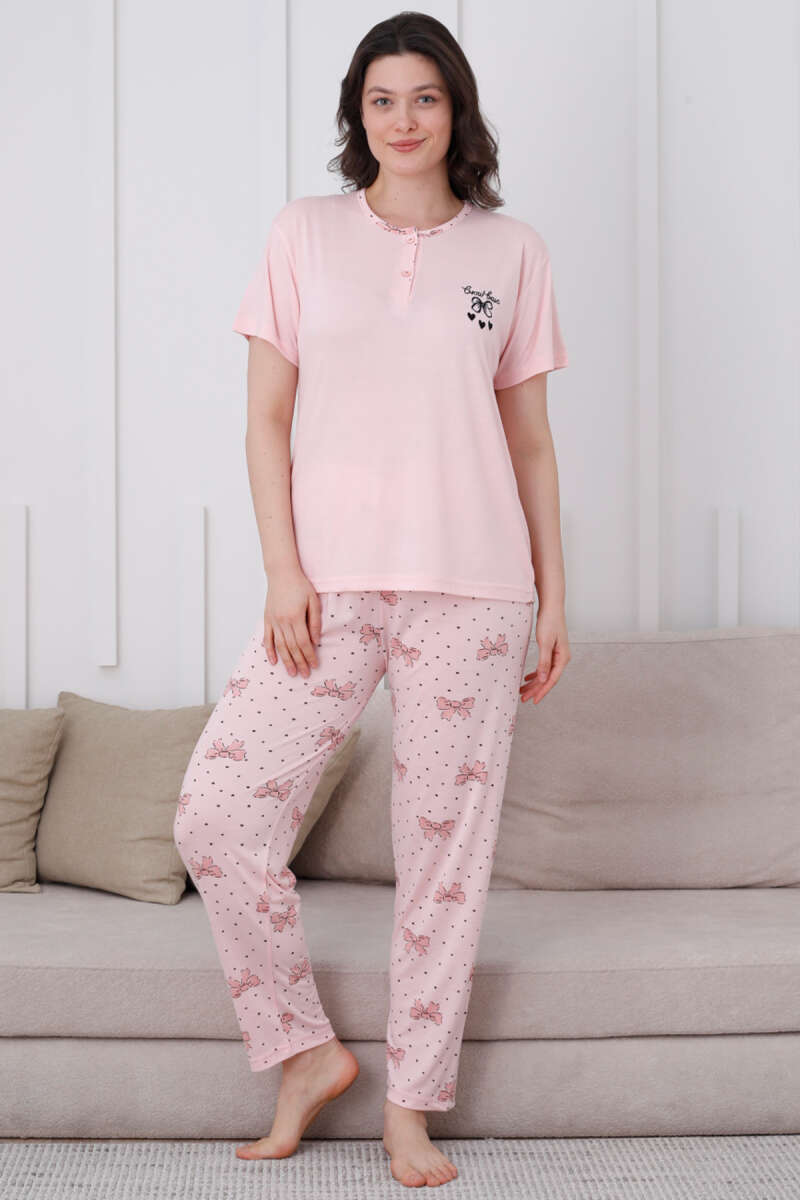 Fiyonk Desen Düğmeli Pijama Takım Yavru Ağzı