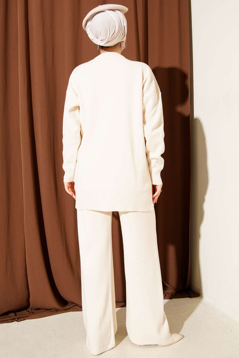 Şerit Detaylı Düğmeli Triko İkili Takım Latte