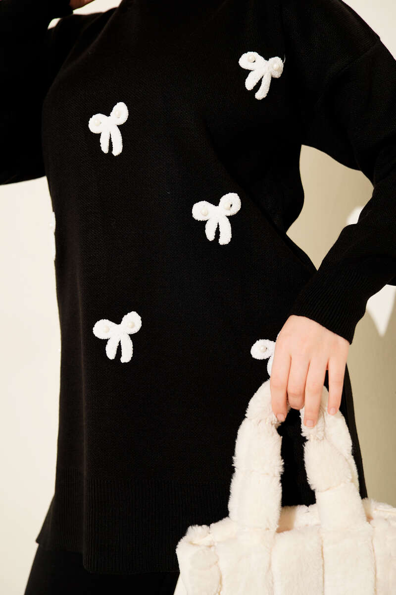 Fiyonk Desenli İncili Triko İkili Takım Lacivert