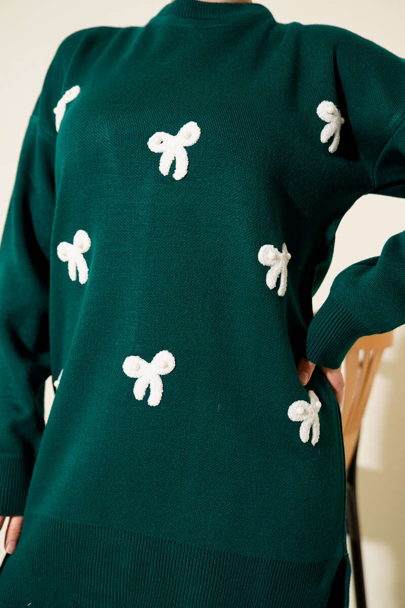 Fiyonk Desenli İncili Triko İkili Takım Lacivert