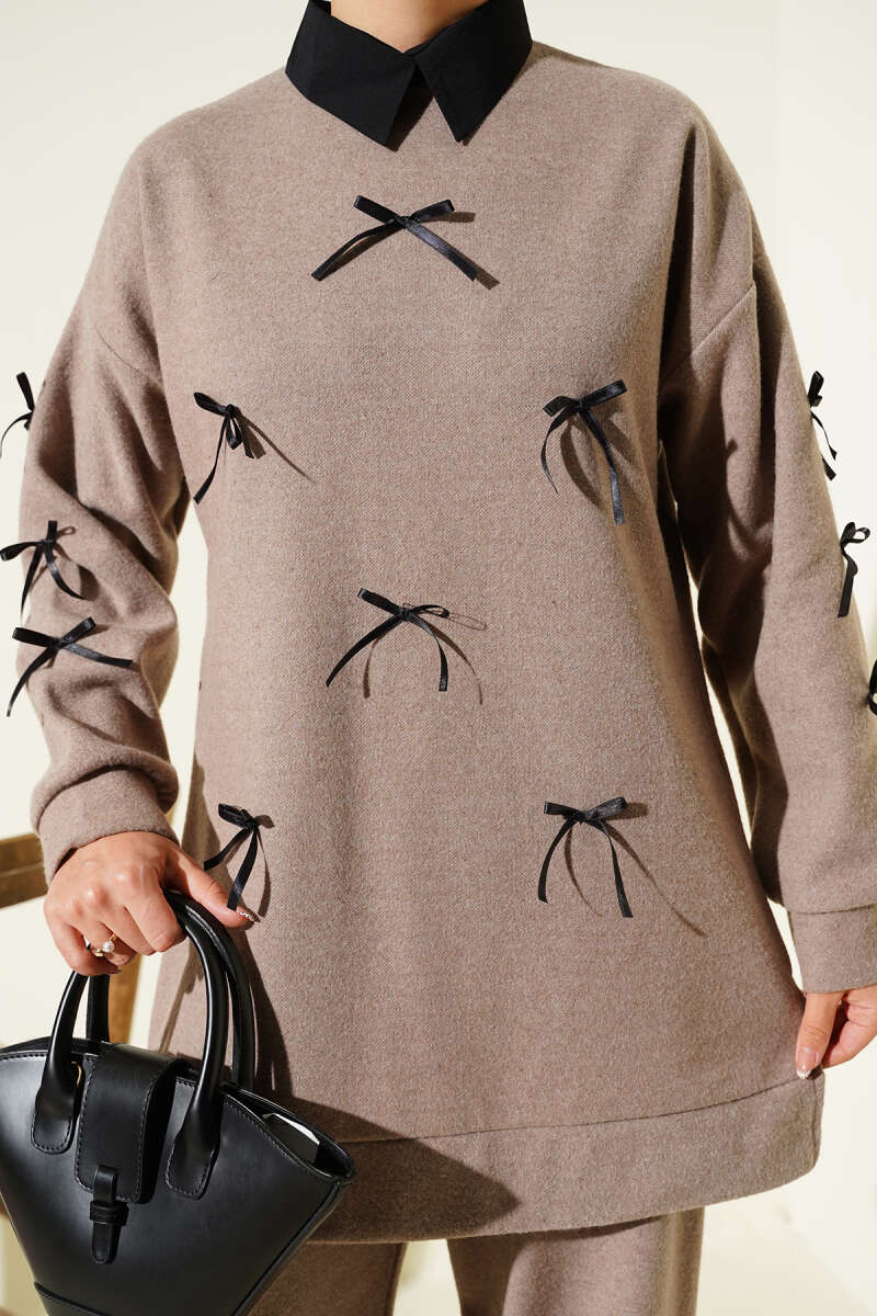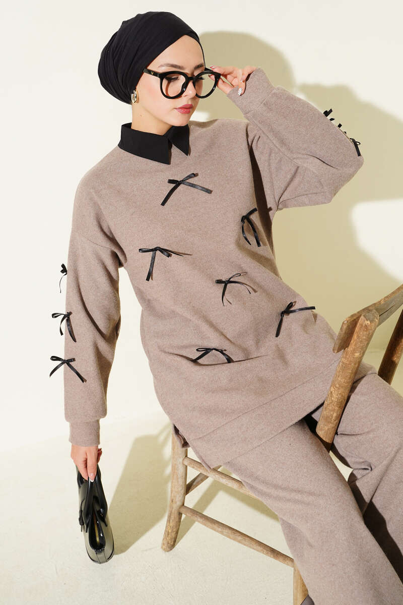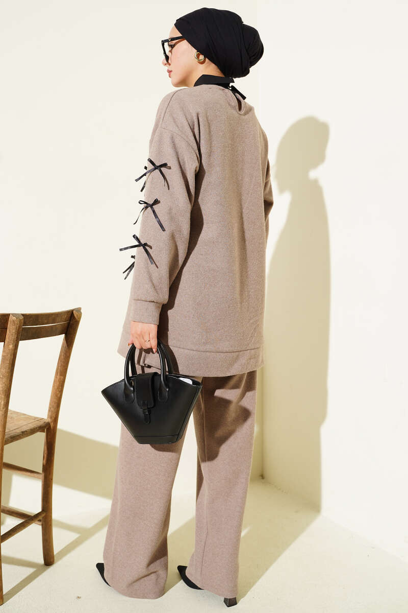 İp Bağlamalı Fitilli Kaşe Tunik Kahve