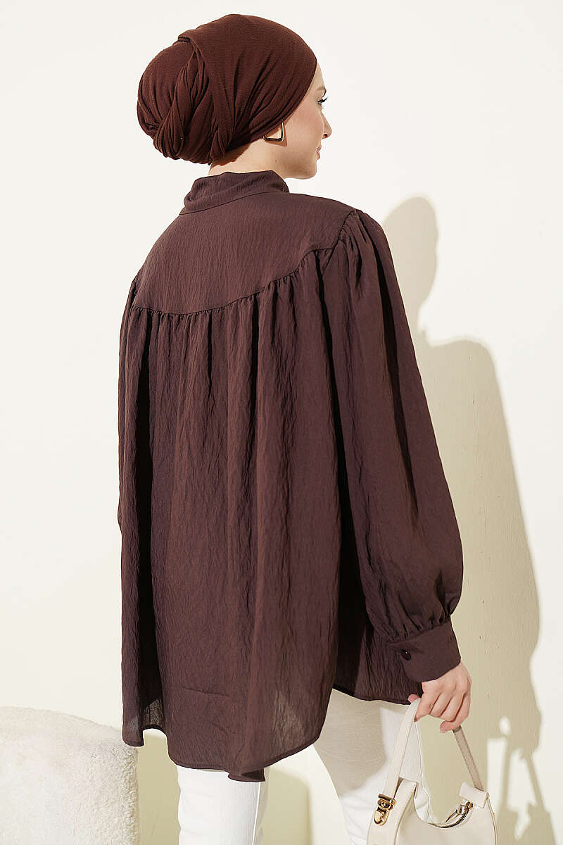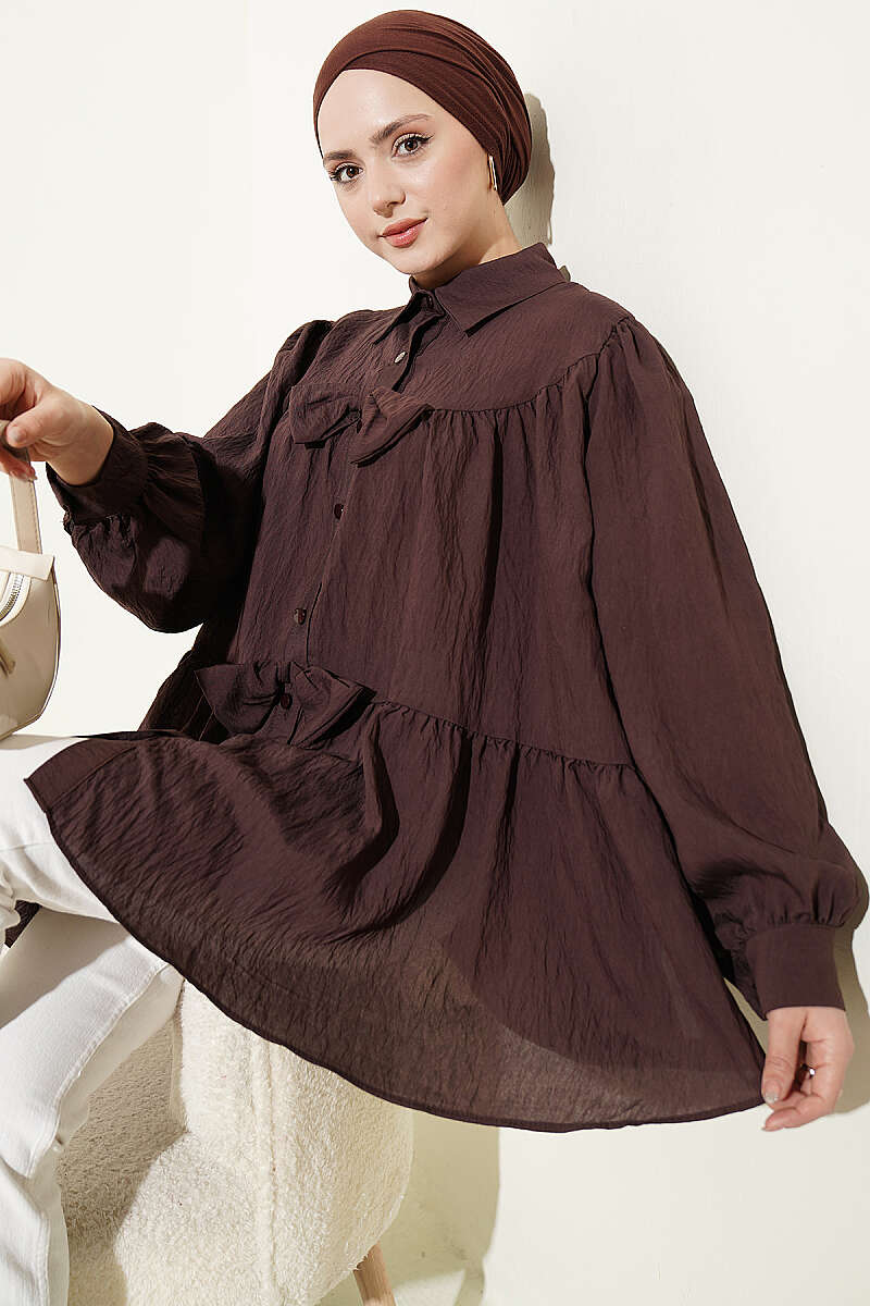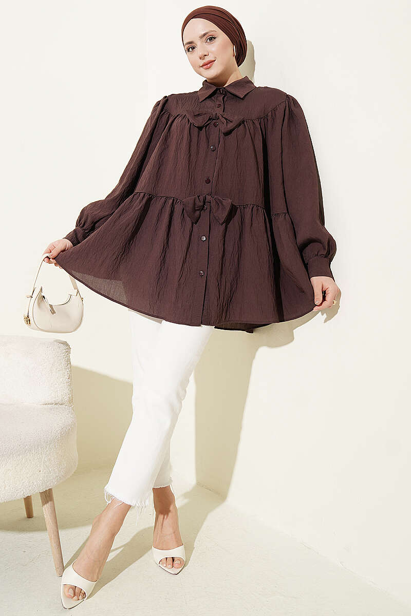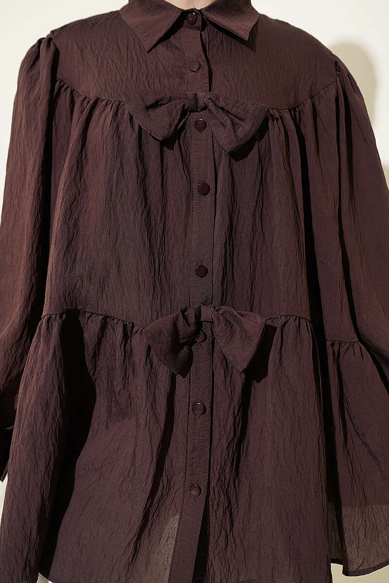 Fiyonk Detaylı Oversize Gömlek Kahve