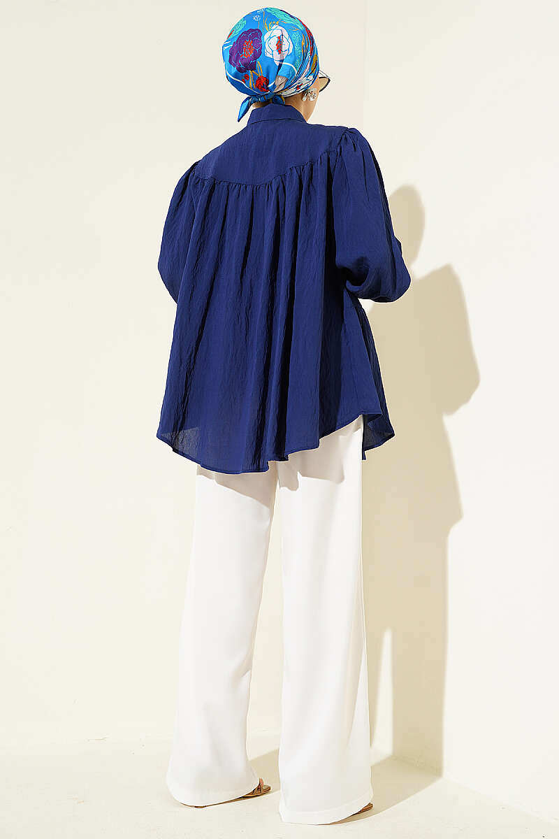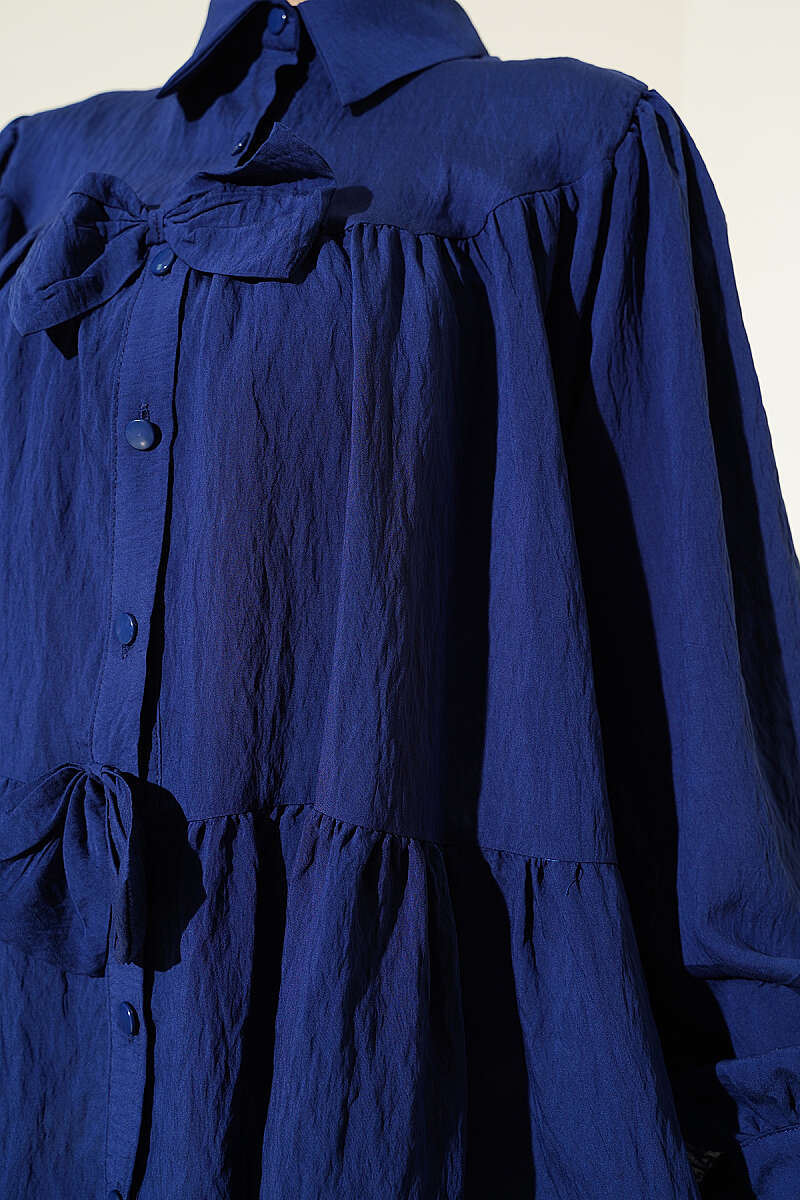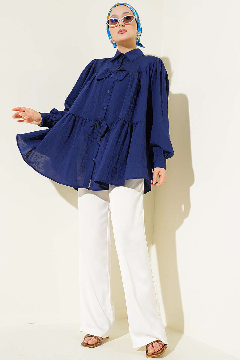 Fiyonk Detaylı Oversize Gömlek Lacivert