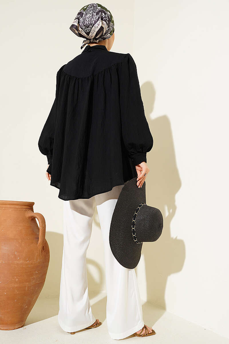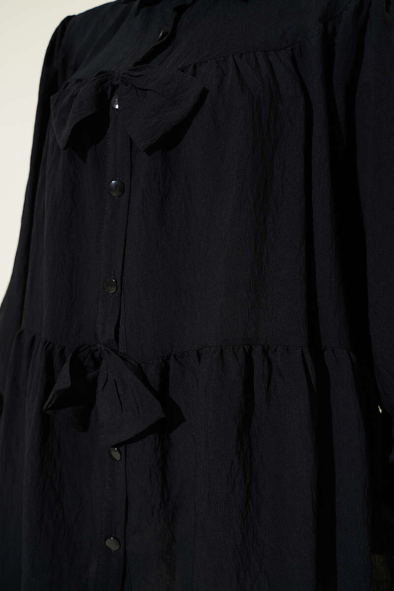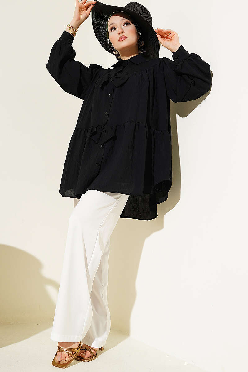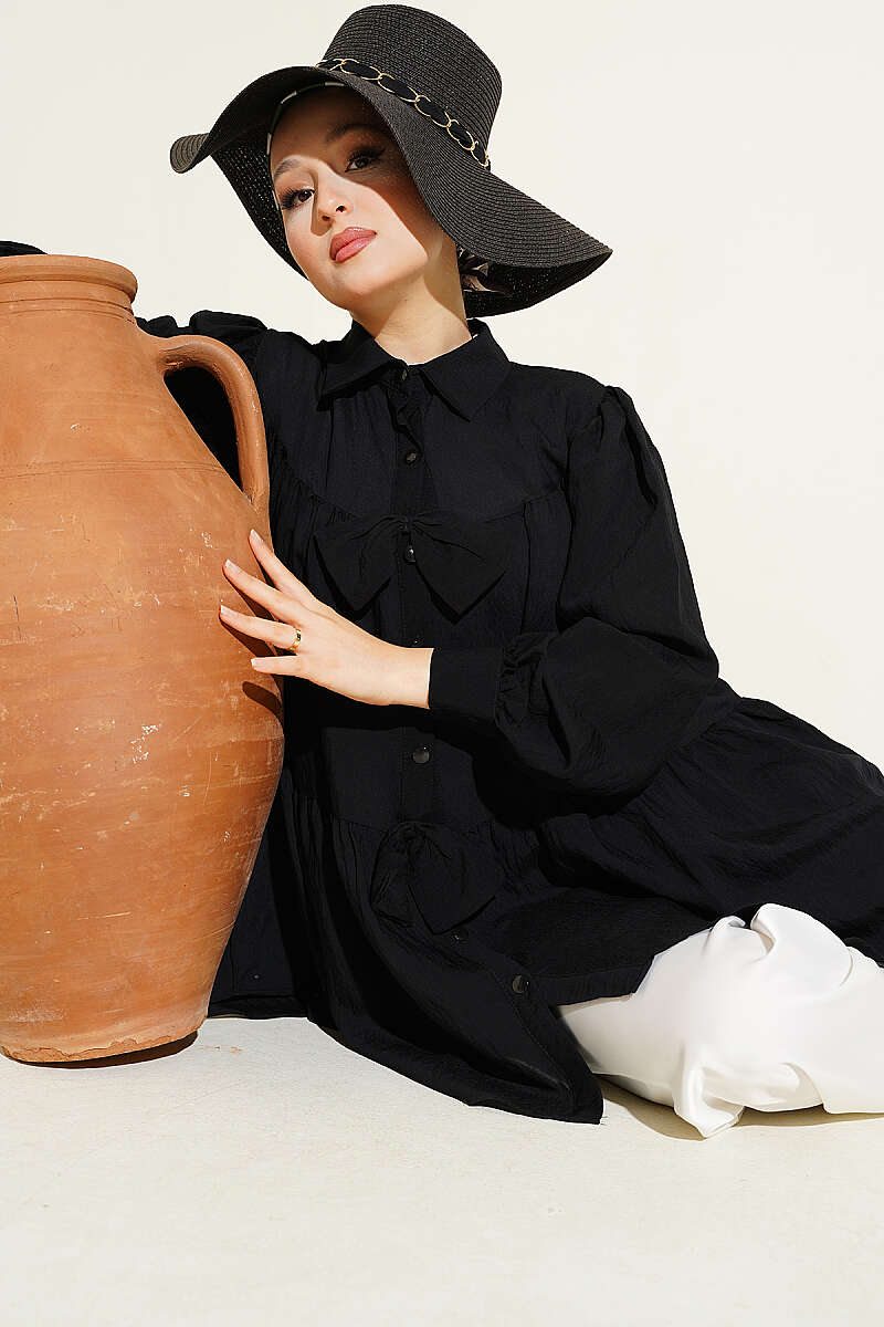 Fiyonk Detaylı Oversize Gömlek Siyah
