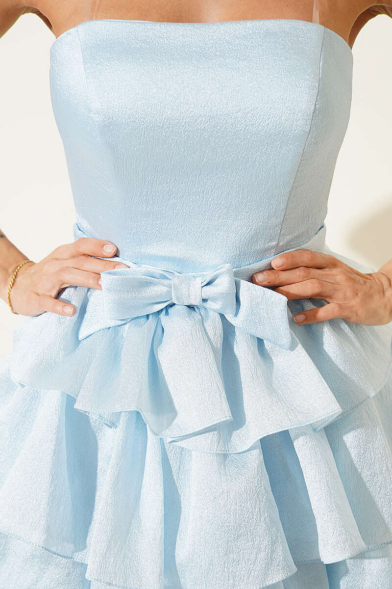Straplez Yaka Şifon Abiye Elbise Bebe Mavi