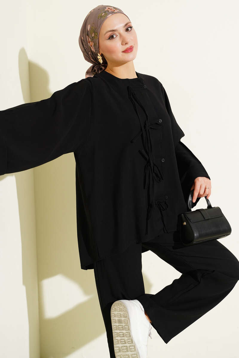 Fiyonk Detaylı Tensel İkili Takım Siyah