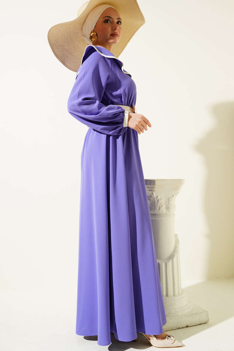 Duble Kol İp Kuşaklı Loyşa Elbise İndigo