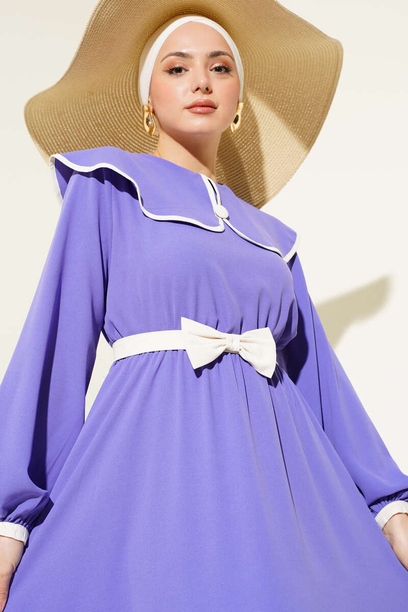 Duble Kol İp Kuşaklı Loyşa Elbise Lacivert