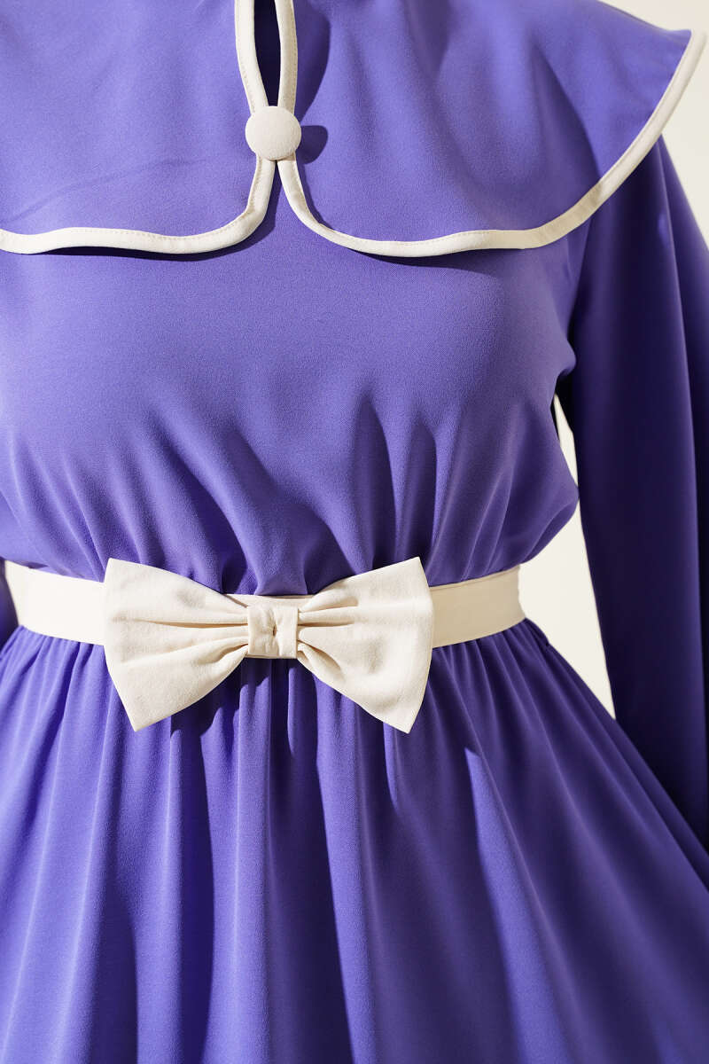 Dik Fitilli Kuşaklı Basic Elbise Bordo