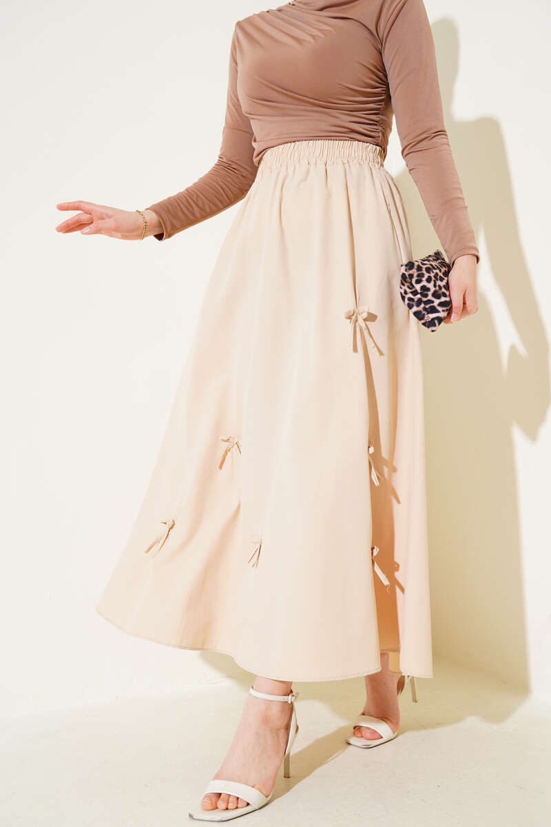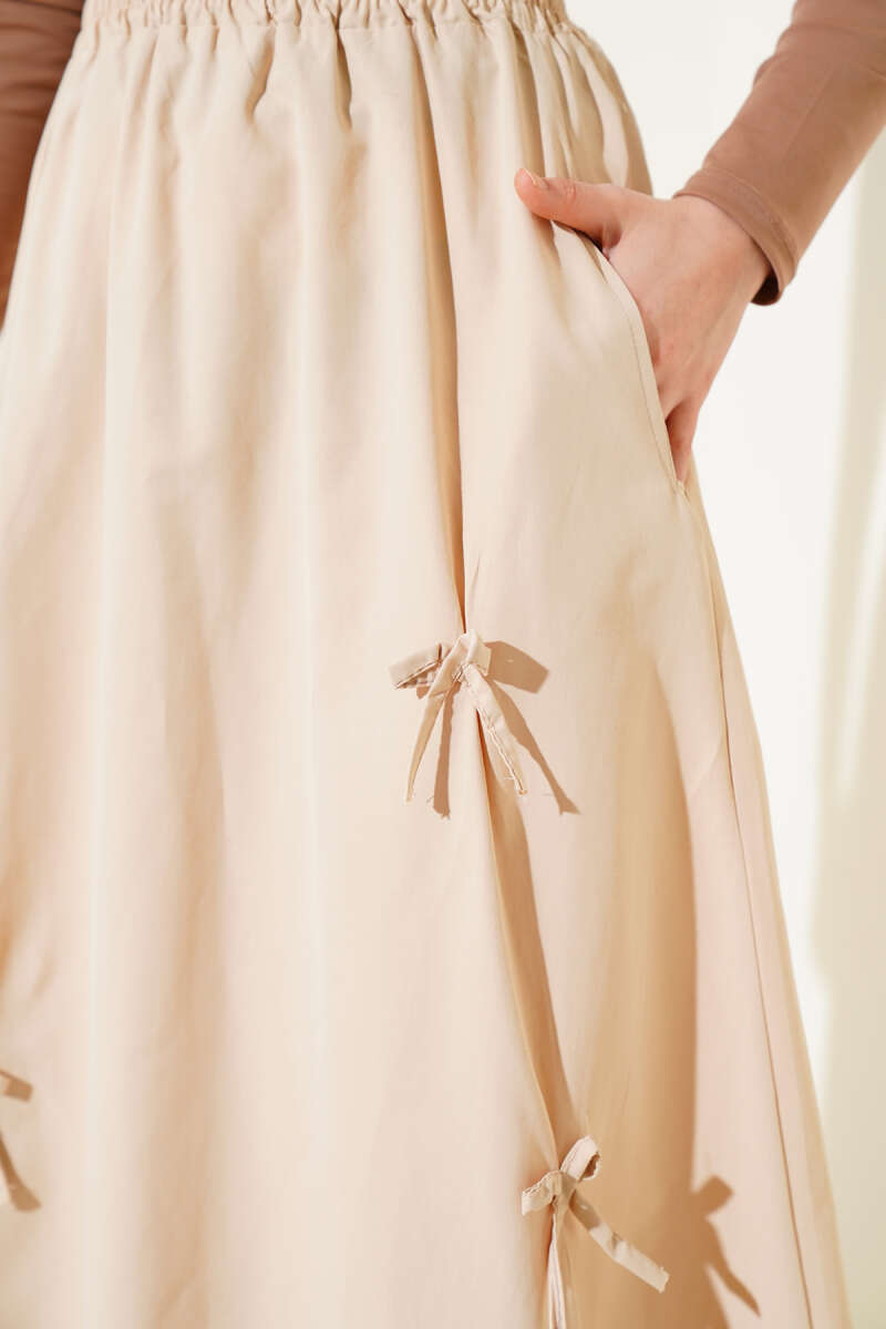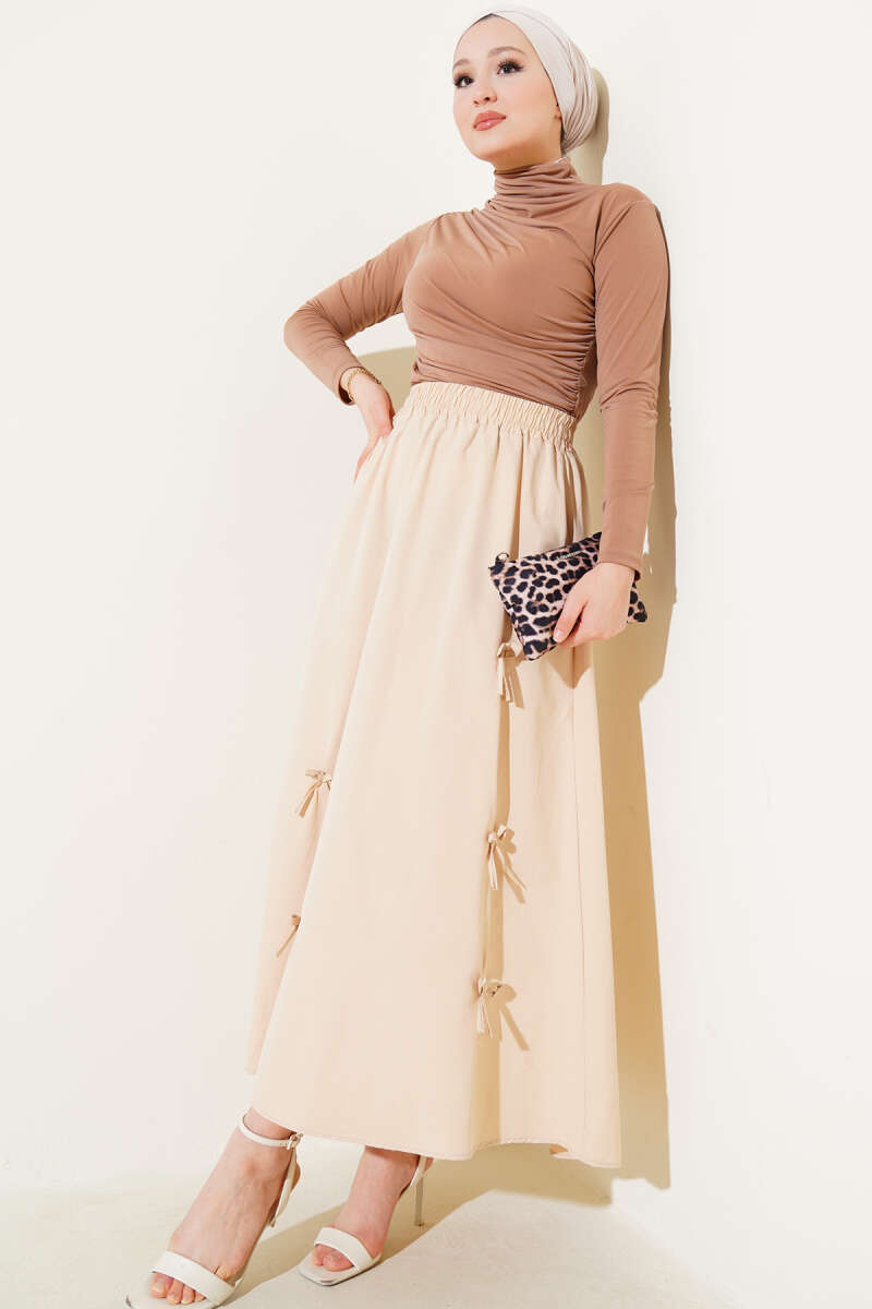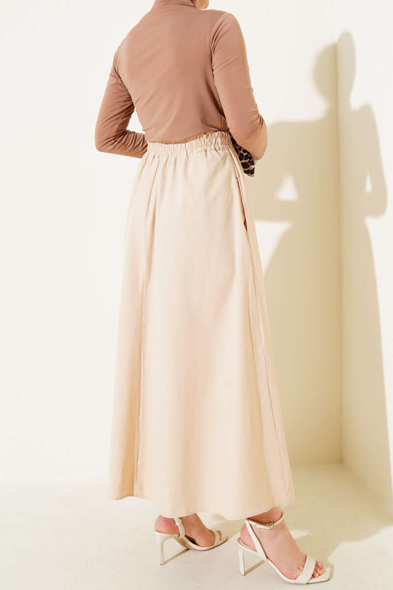 Kemer Aksesuarlı Ekoseli Etek Haki