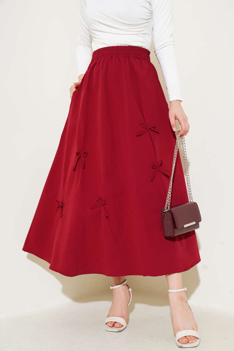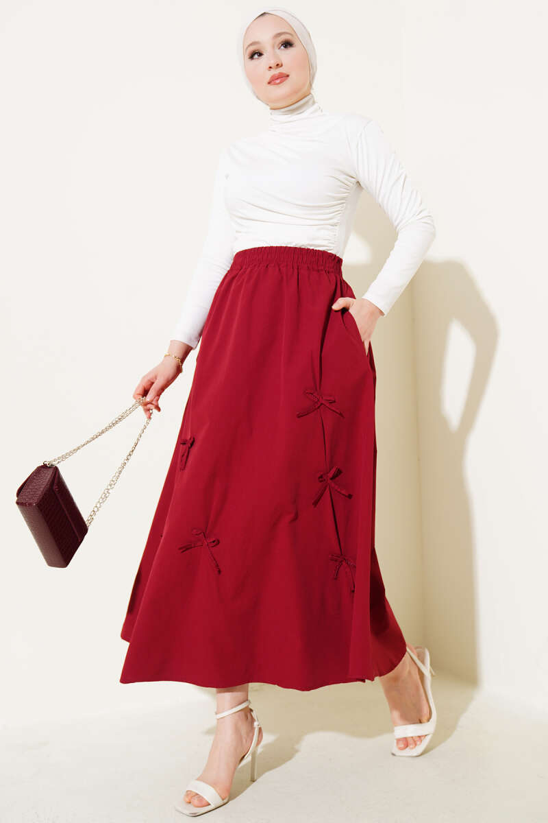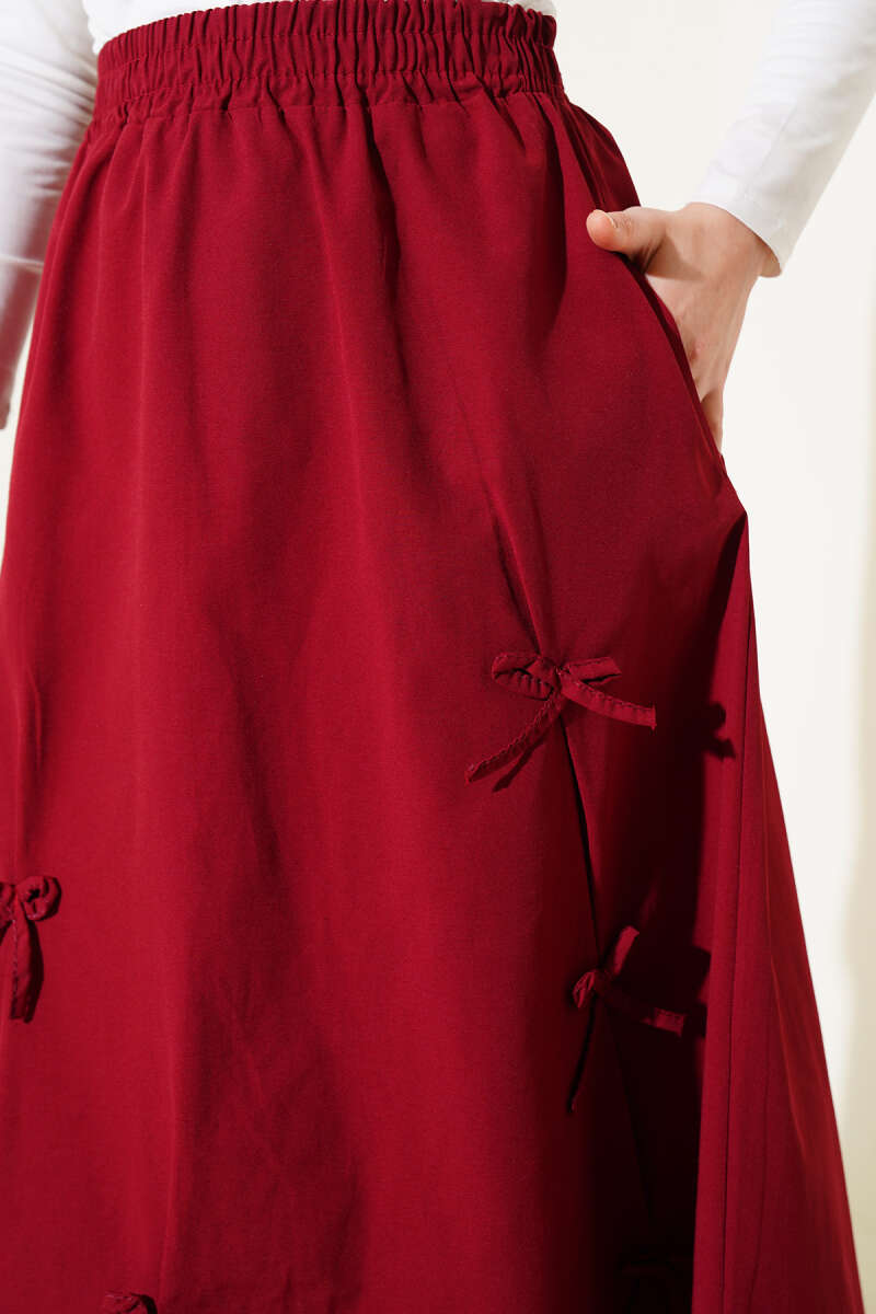 Kemer Aksesuarlı Ekoseli Etek Bordo