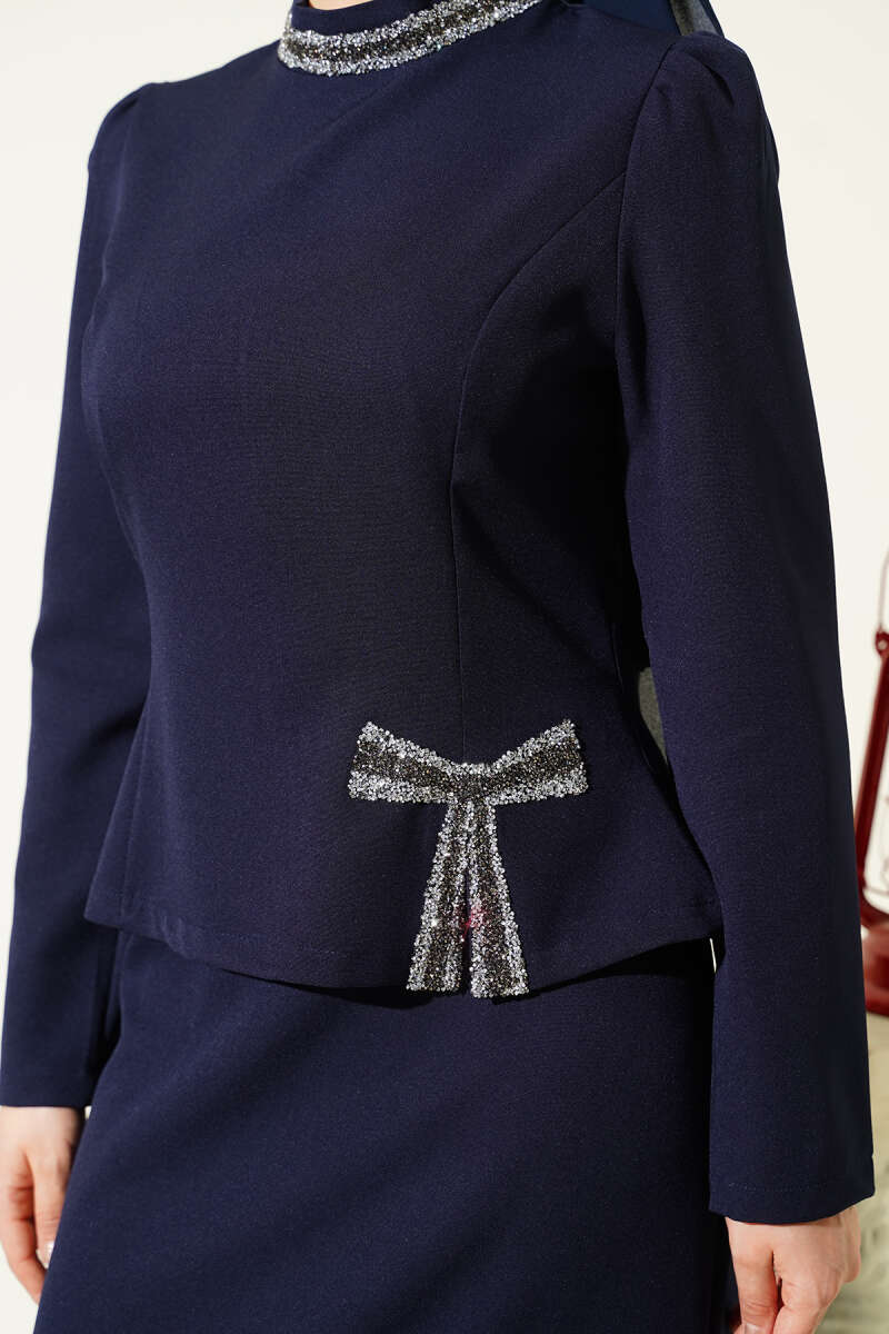 Fiyonk Taş Süslemeli Etekli İkili Takım Lacivert