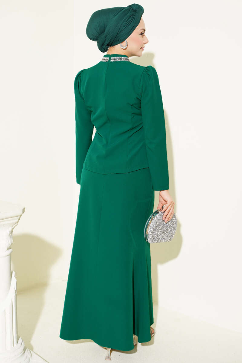 Fiyonk Taş Süslemeli Etekli İkili Takım Yeşil