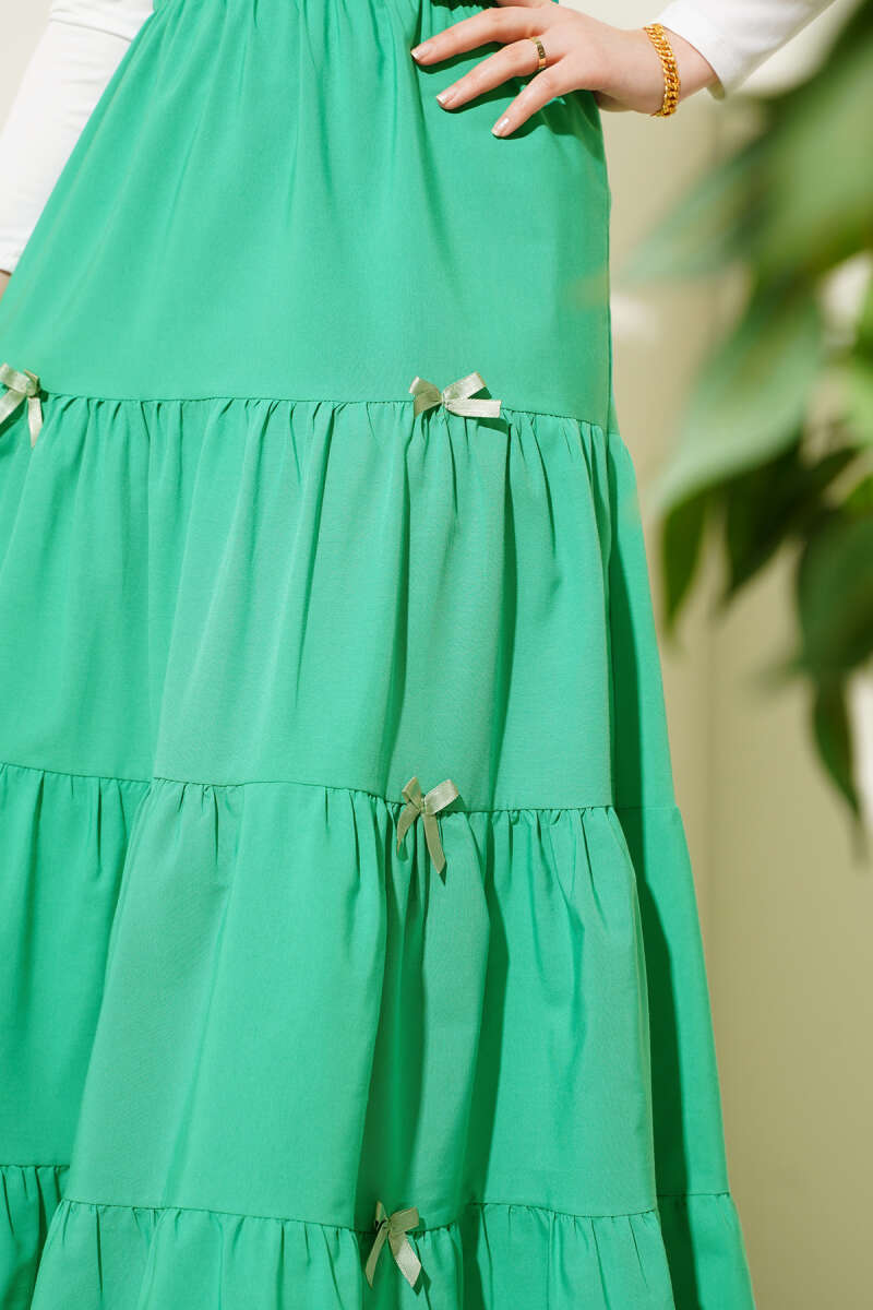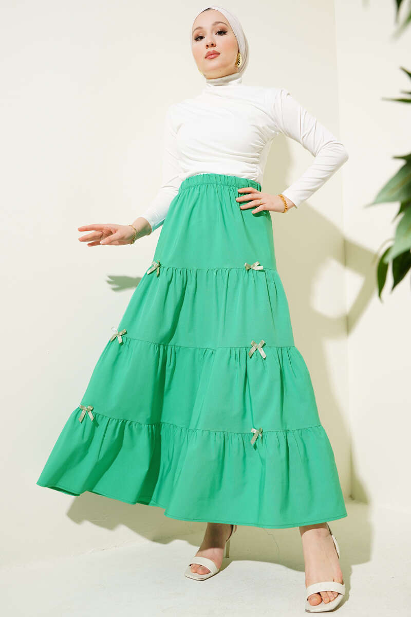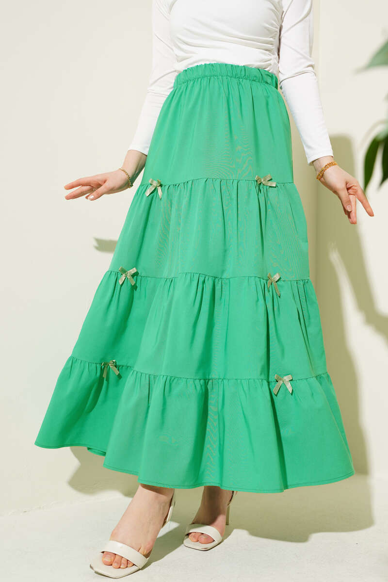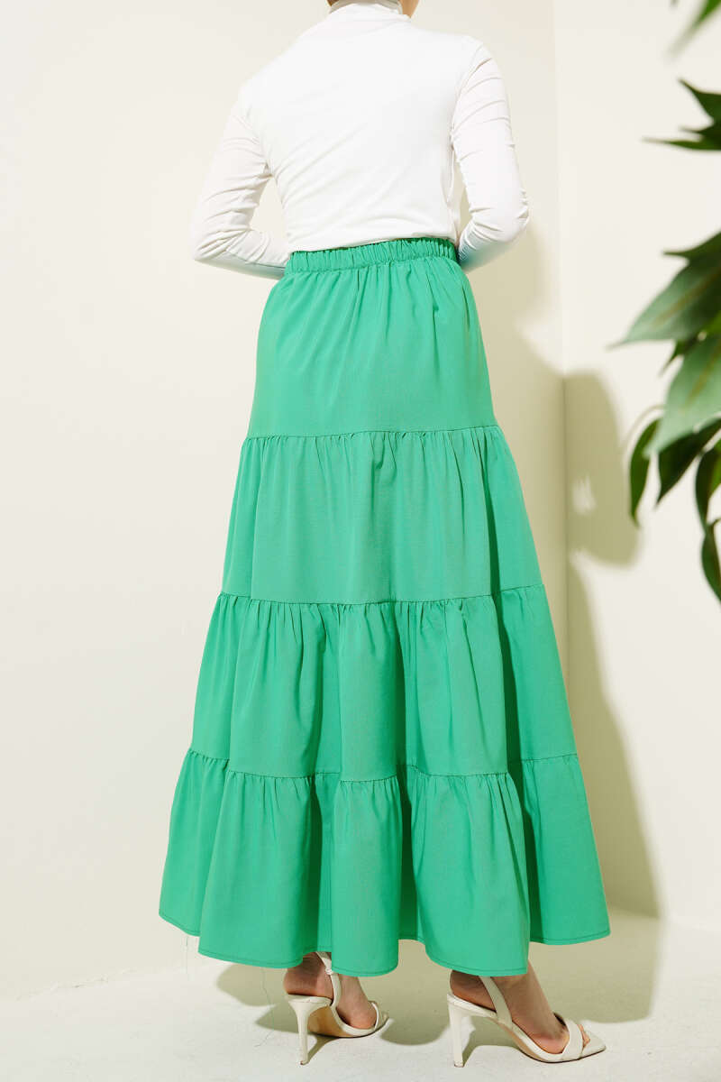 Ekose Desenli Düğmeli Kloş Etek Haki