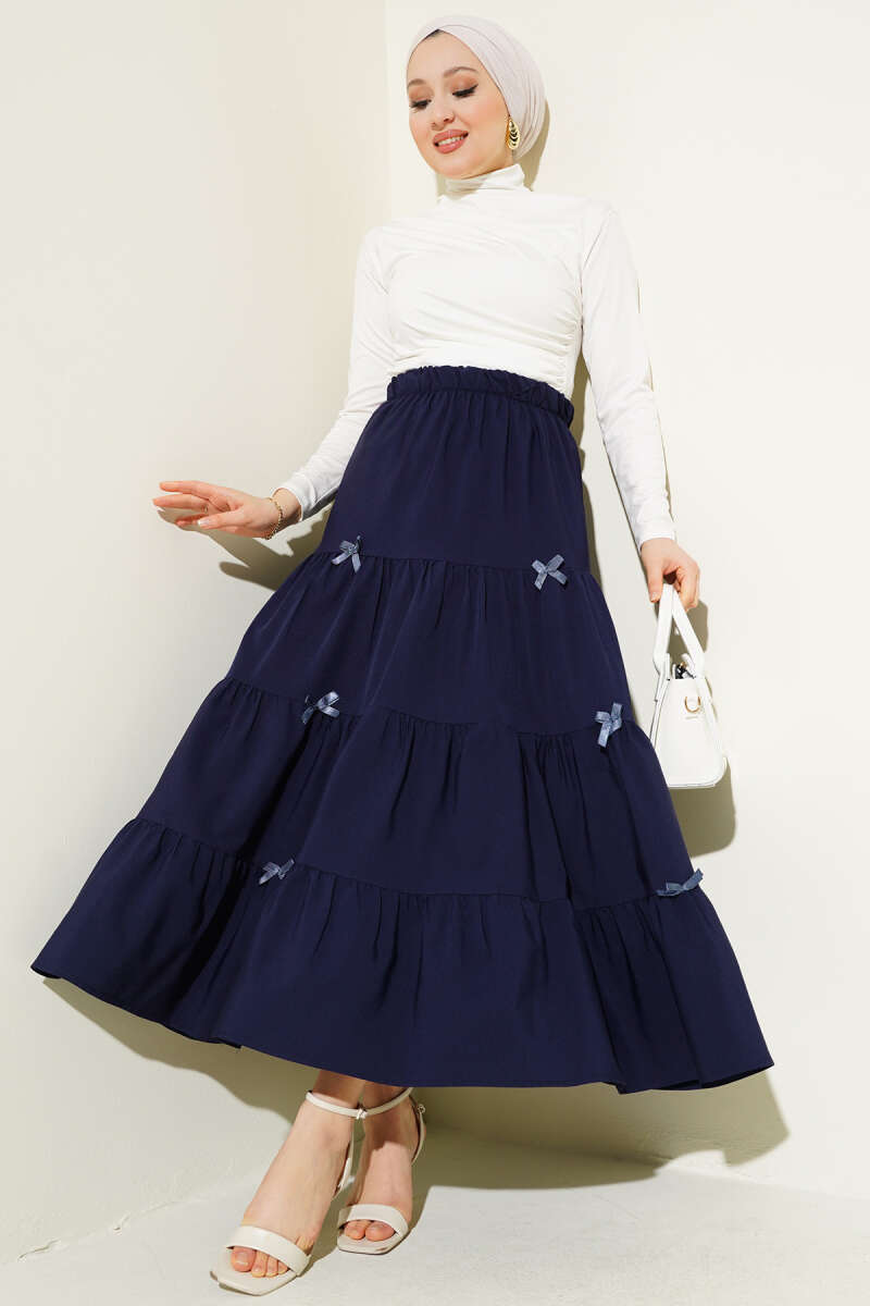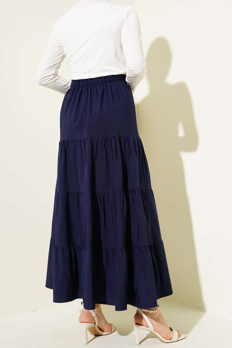 Ekose Desenli Düğmeli Kloş Etek Haki