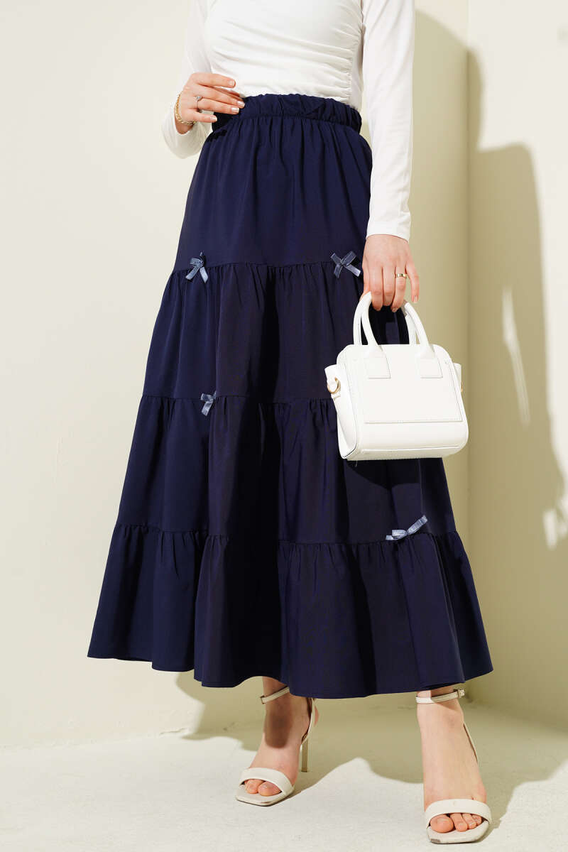 Kemer Aksesuarlı Ekoseli Etek Bordo