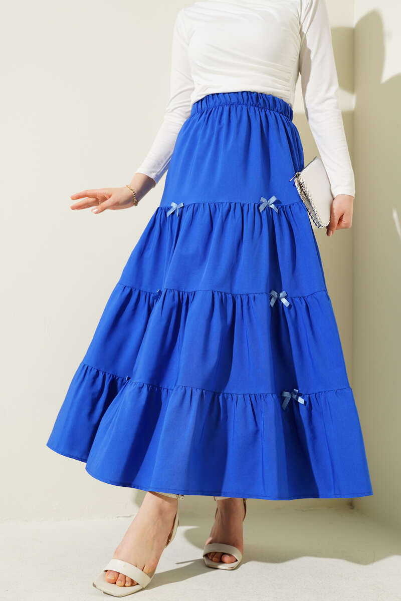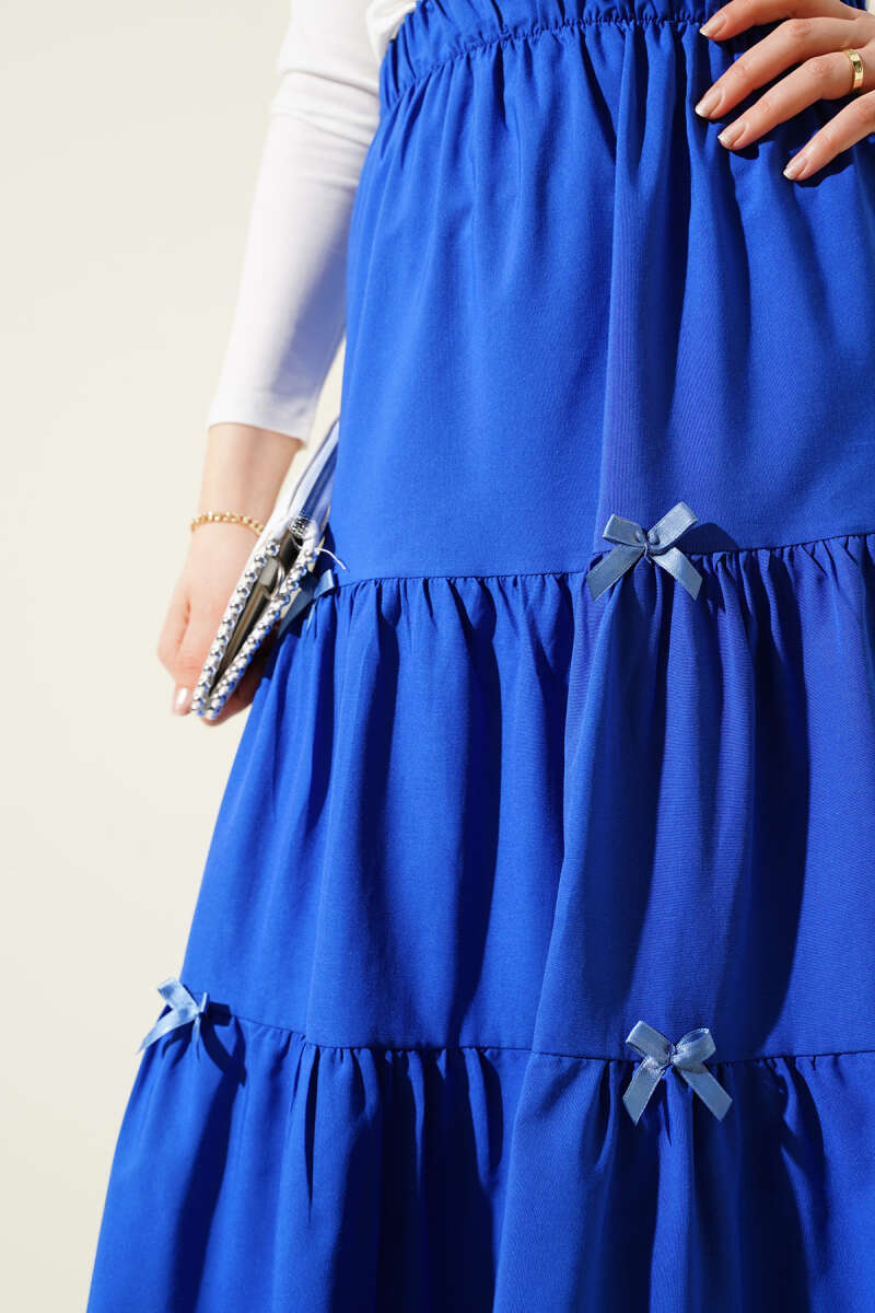 Kemer Aksesuarlı Ekoseli Etek Bordo