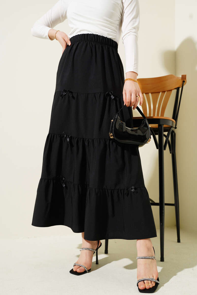 Kemer Aksesuarlı Ekoseli Etek Bordo