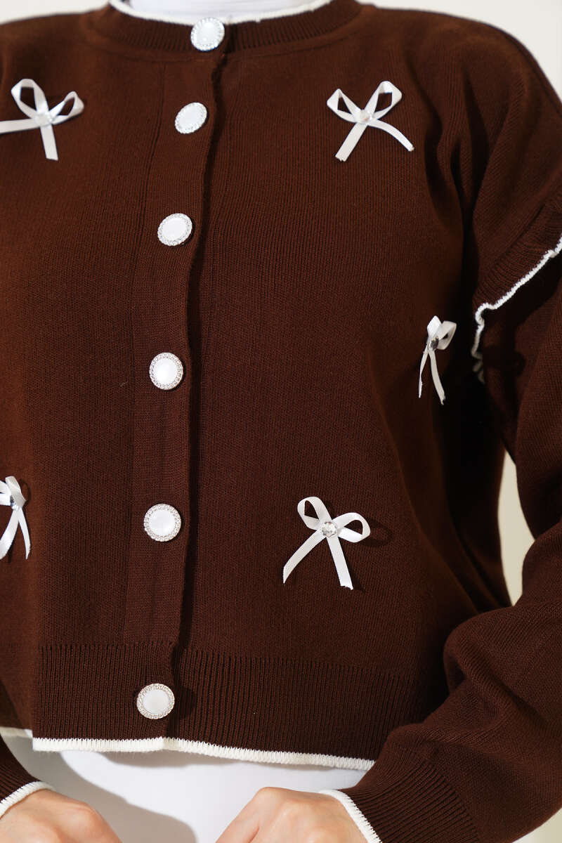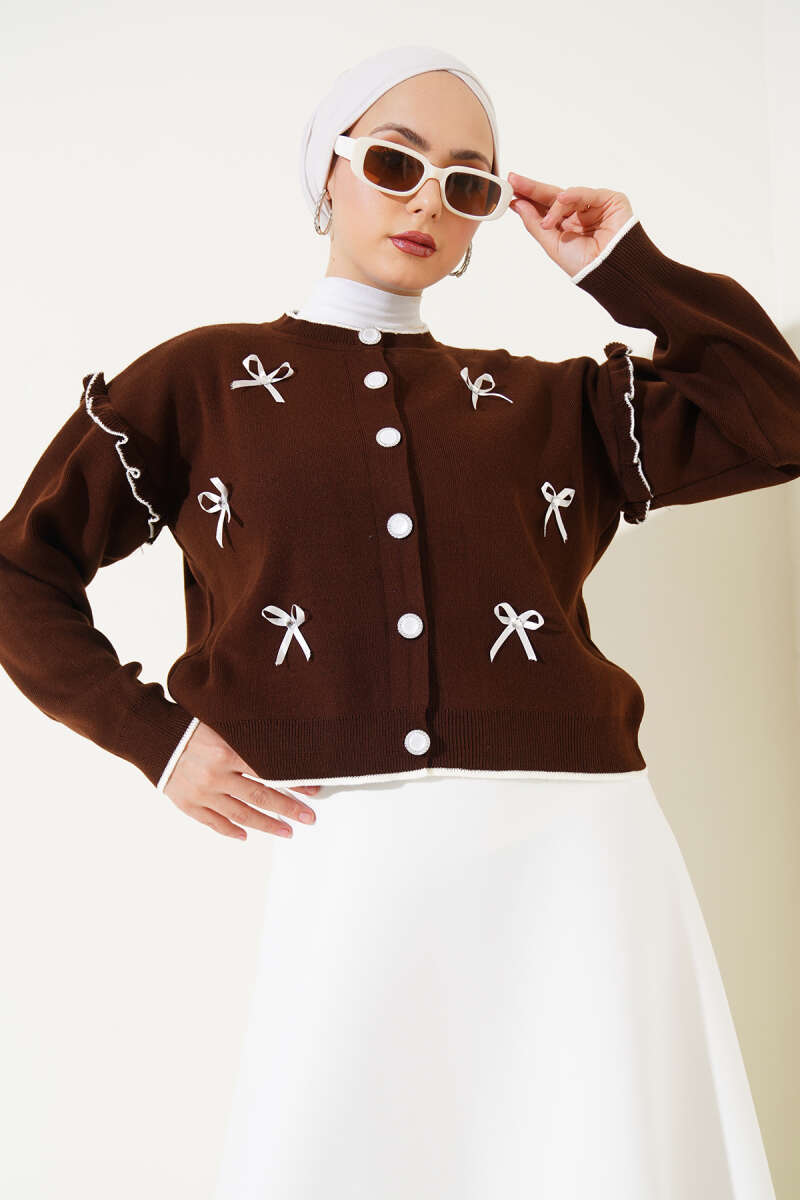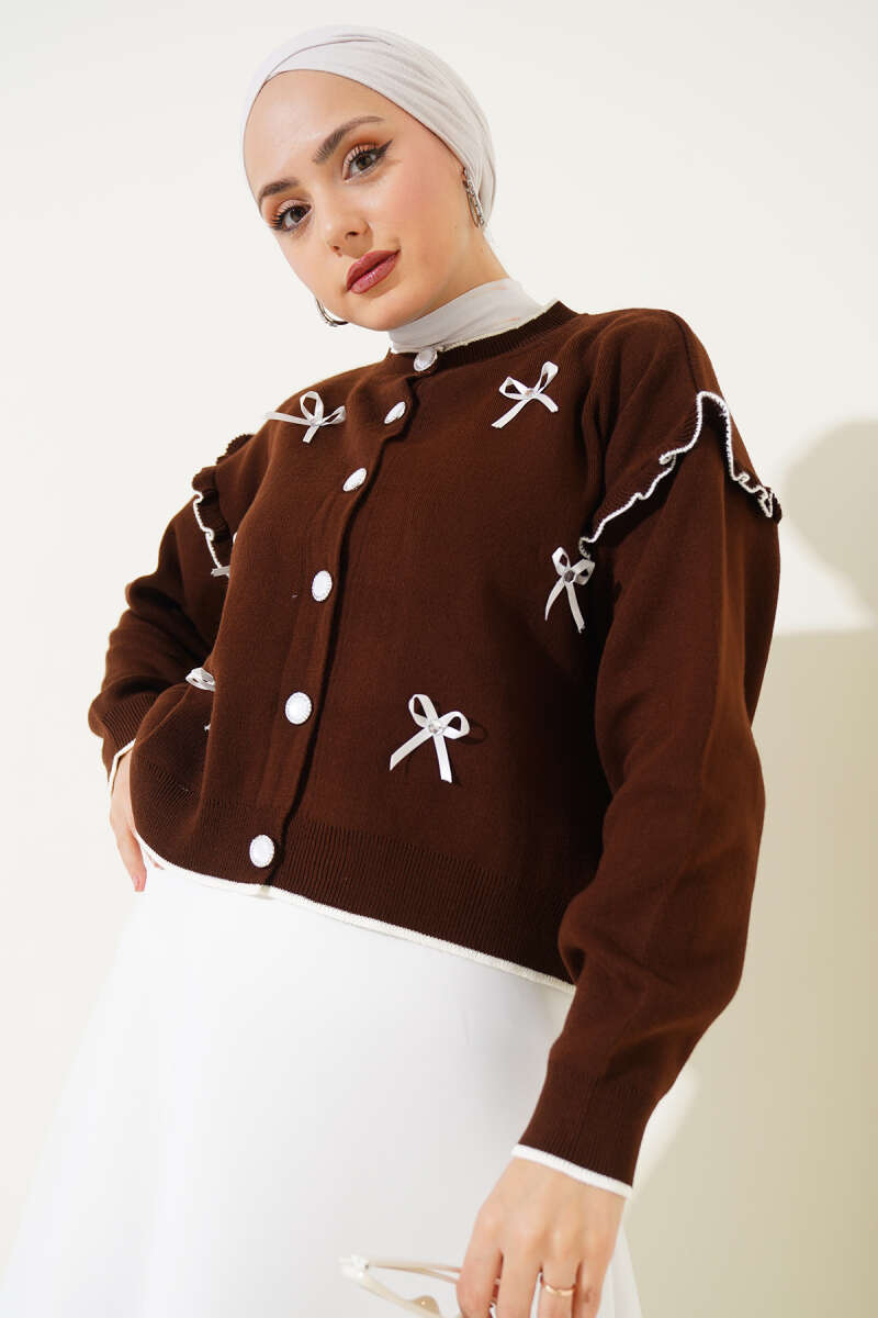 Fiyonklu Fırfırlı Kısa Triko Hırka Kahve