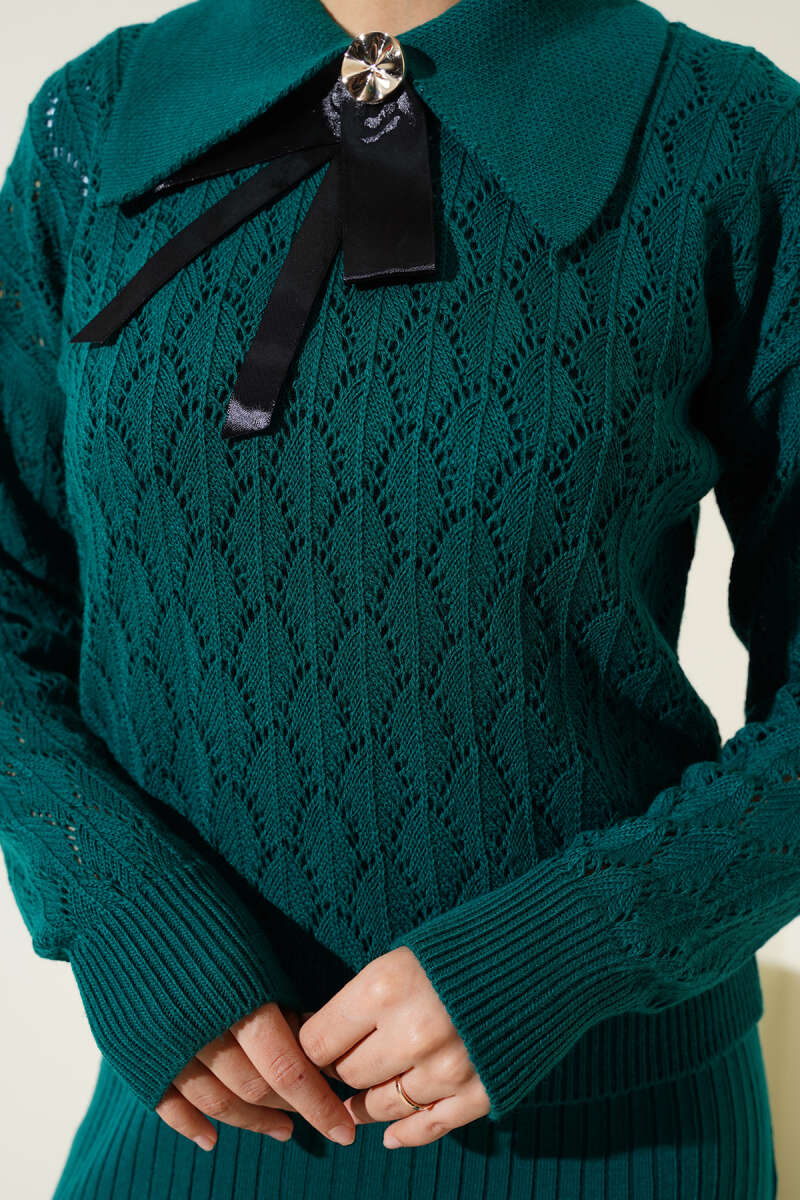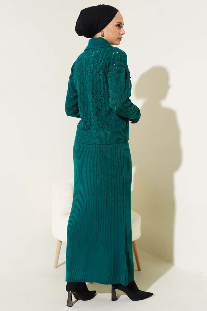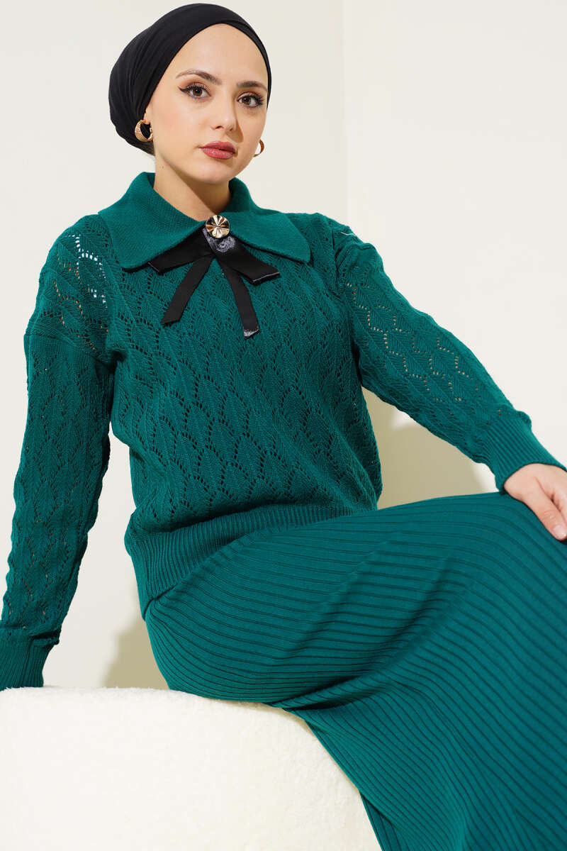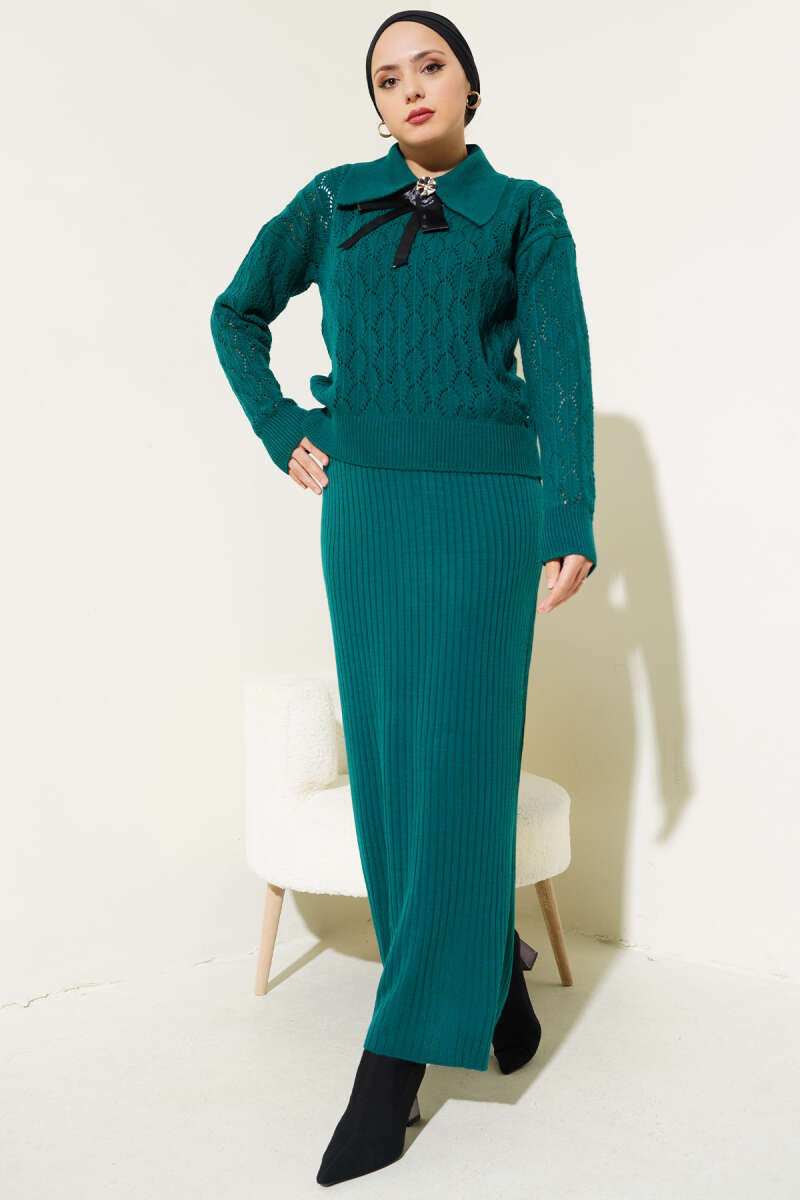 Çoban Dikişli Triko Tunik İkili Takım Yağ Yeşili