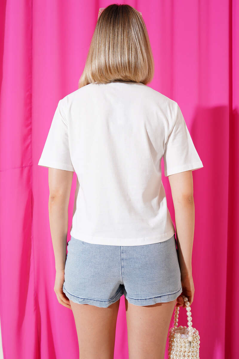 Balıkçı Yaka Fitilli Parmak Geçirmeli Crop Beyaz