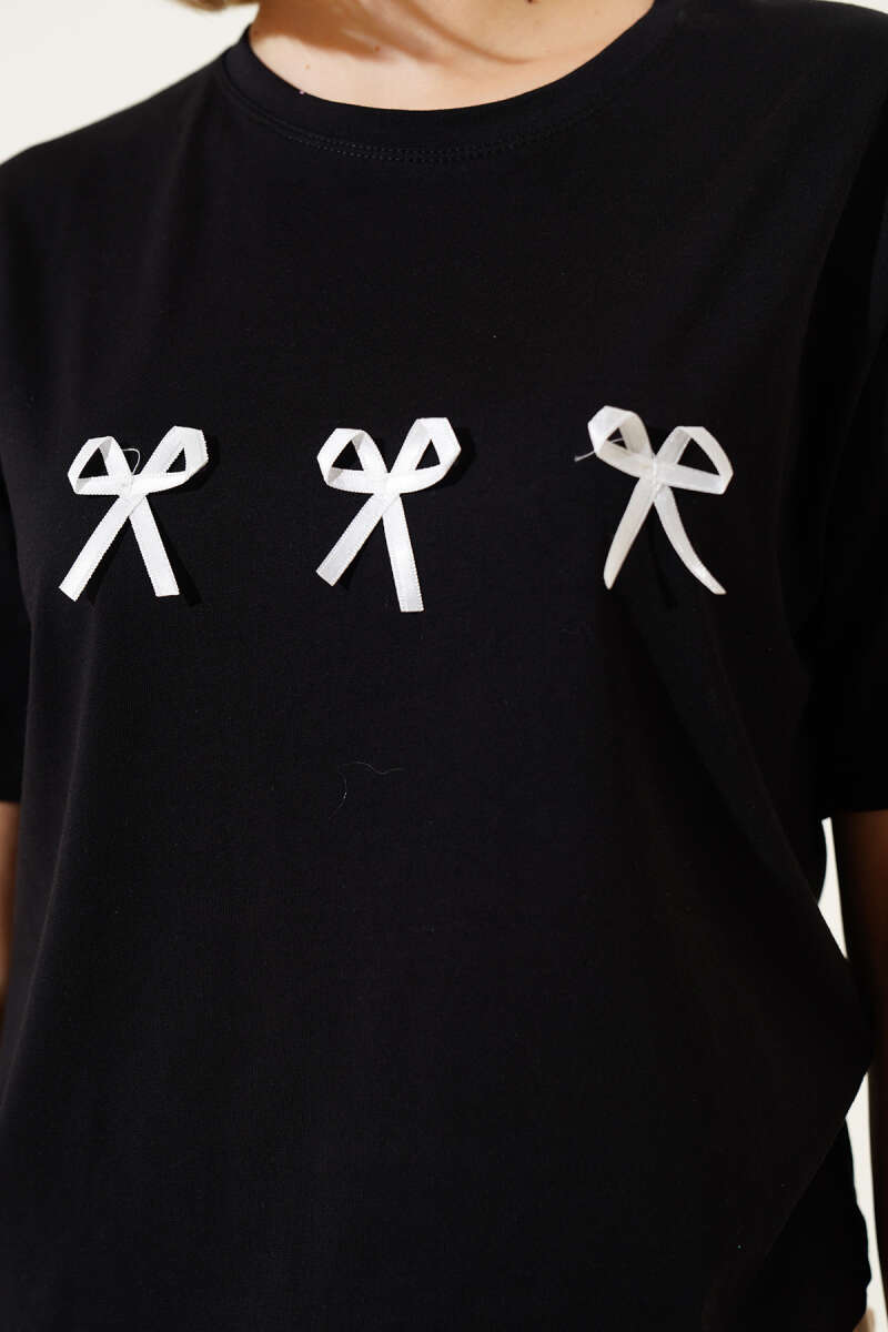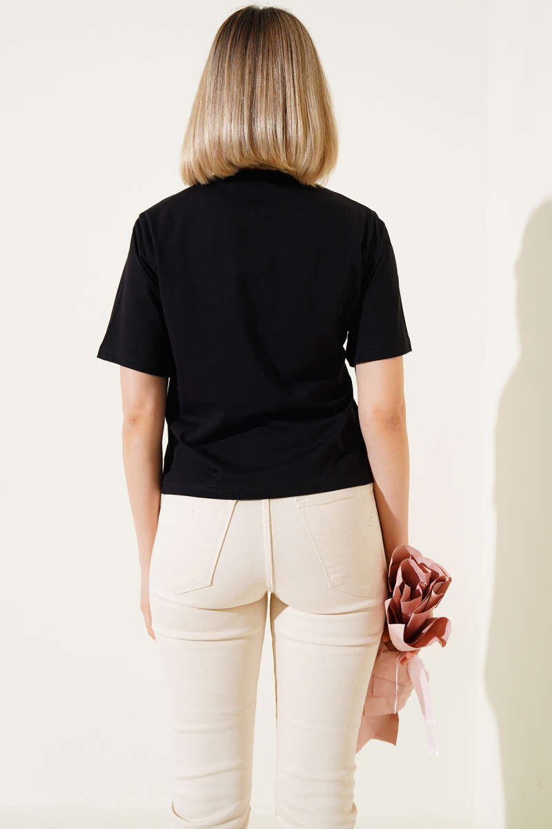 Balıkçı Yaka Fitilli Parmak Geçirmeli Crop Siyah