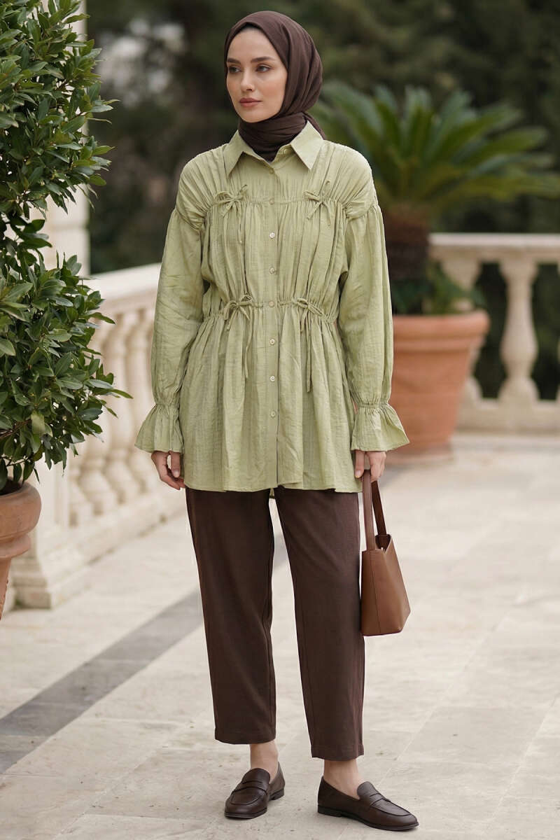 Yan Parça Bağlamalı Salaş Gömlek Kahve