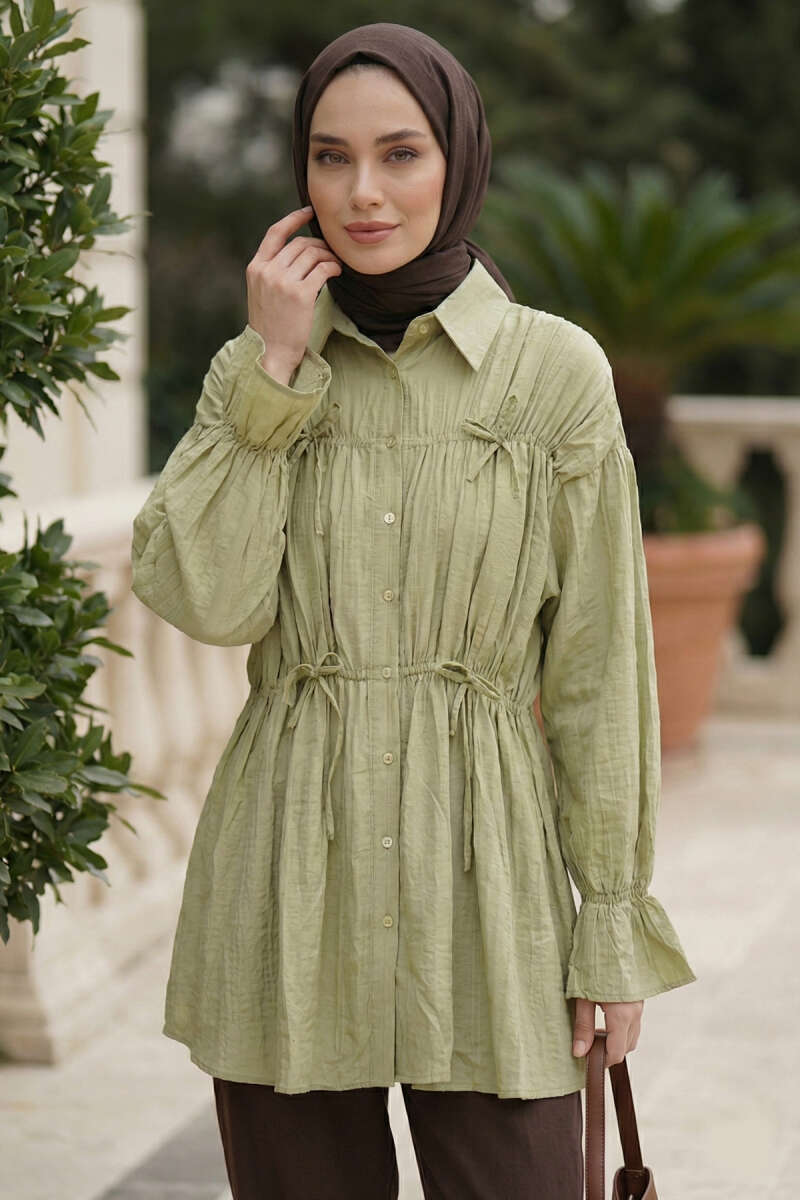 Yan Parça Bağlamalı Salaş Gömlek Saks