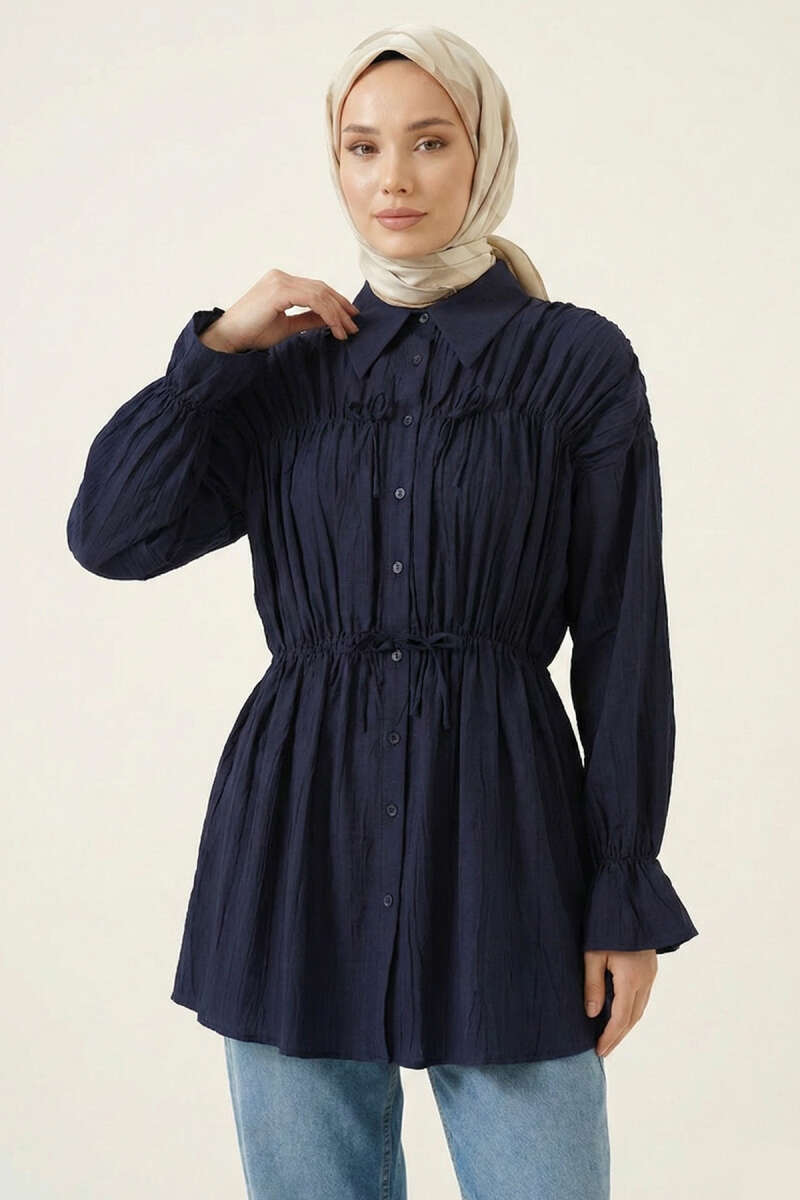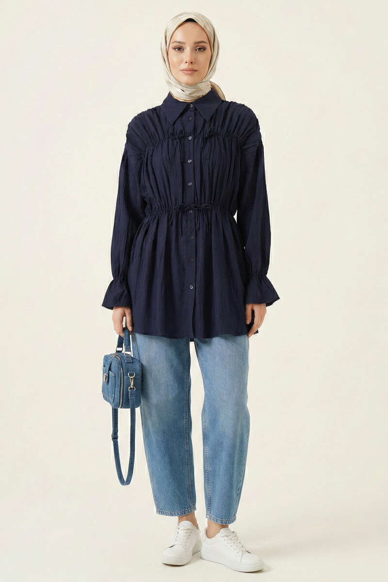 Yan Parça Bağlamalı Salaş Gömlek Saks