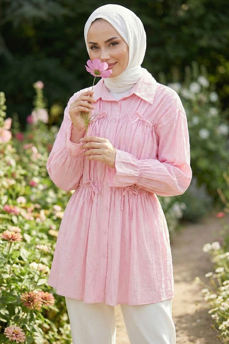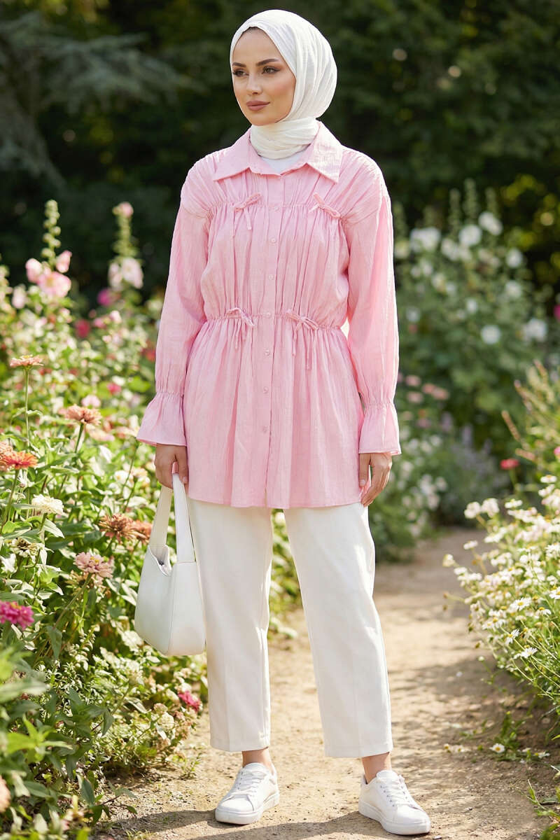 Yan Parça Bağlamalı Salaş Gömlek Pembe