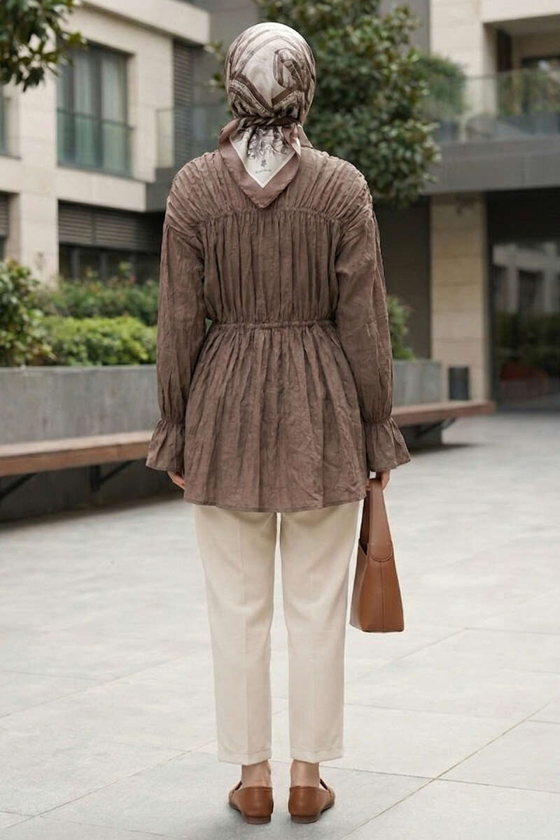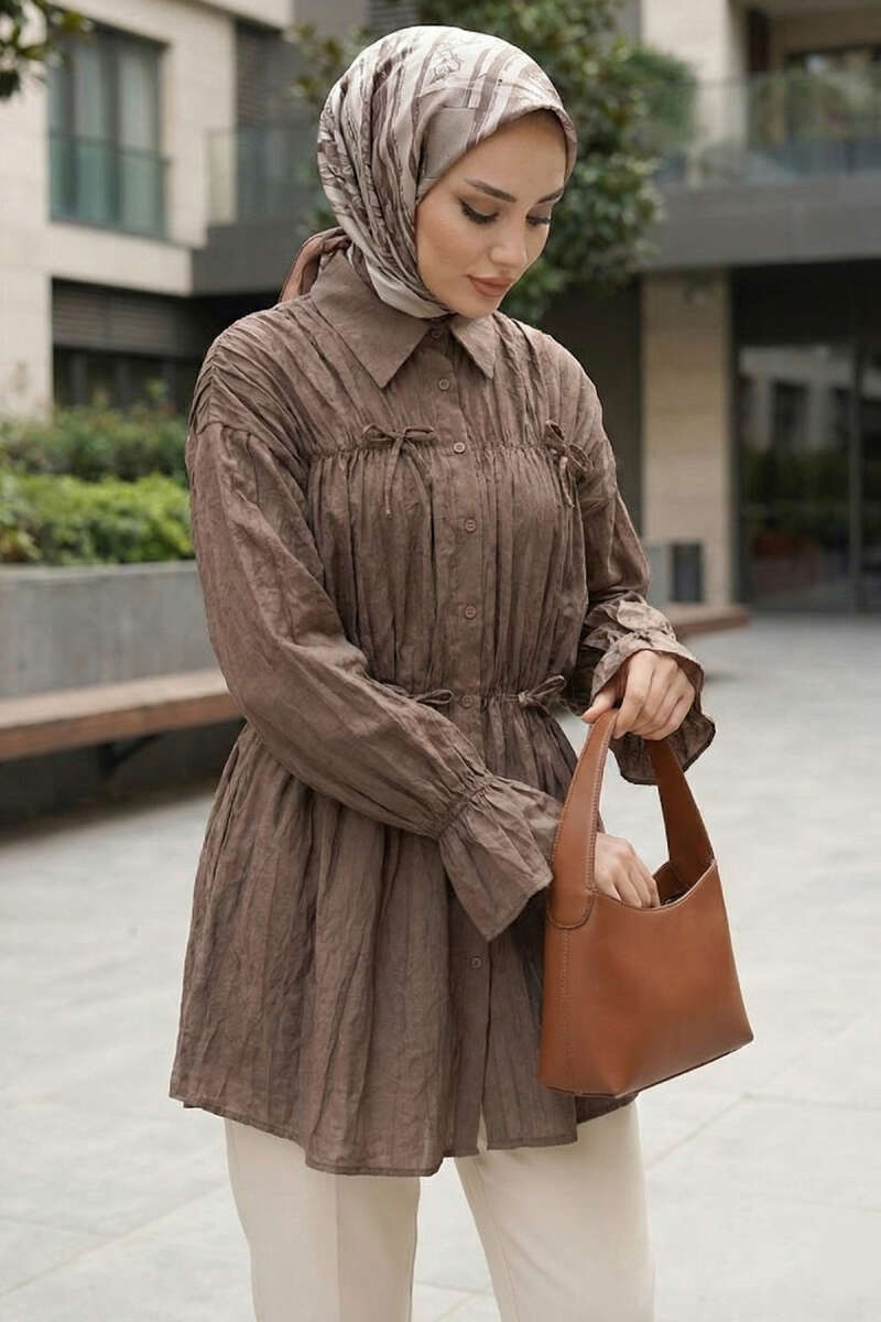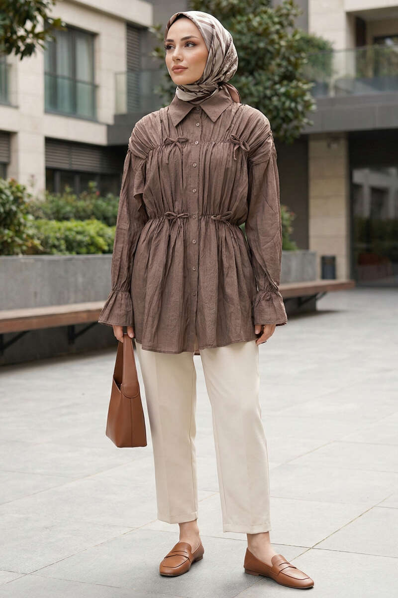 Yan Parça Bağlamalı Salaş Gömlek Kahve