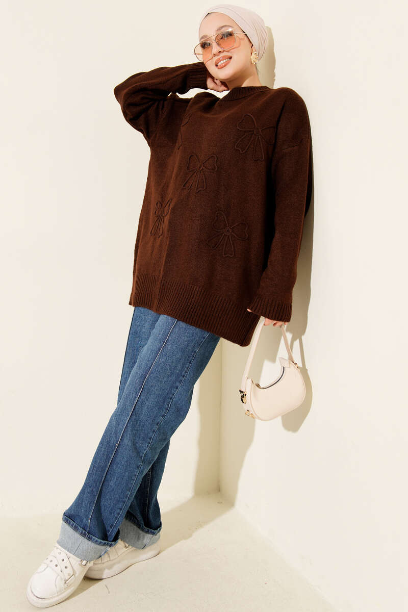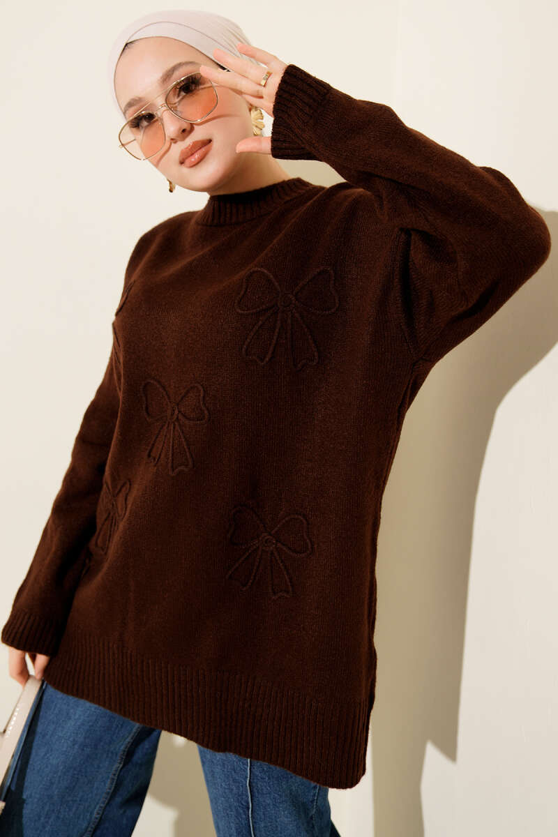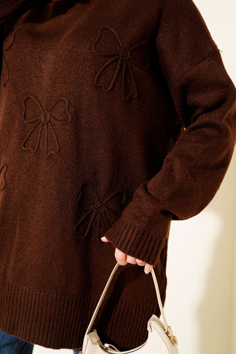 Kol Bağcık Detaylı Triko Tunik Bordo