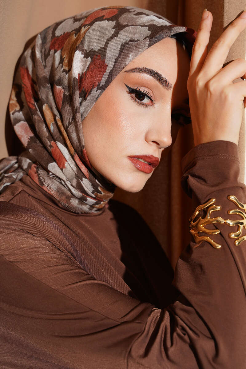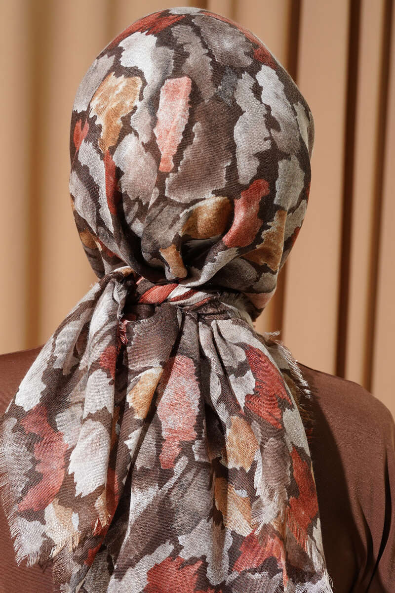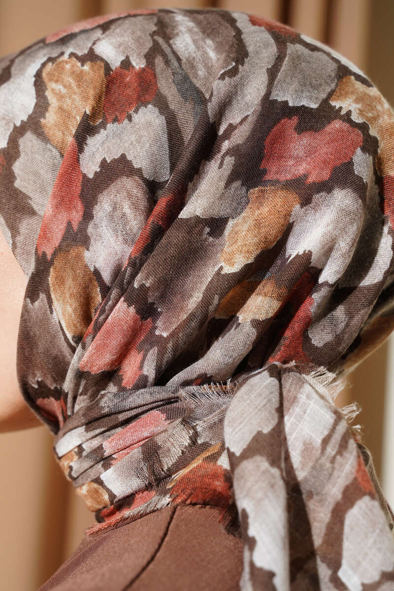 Flamlı Ebruli Desenli Eşarp Haki