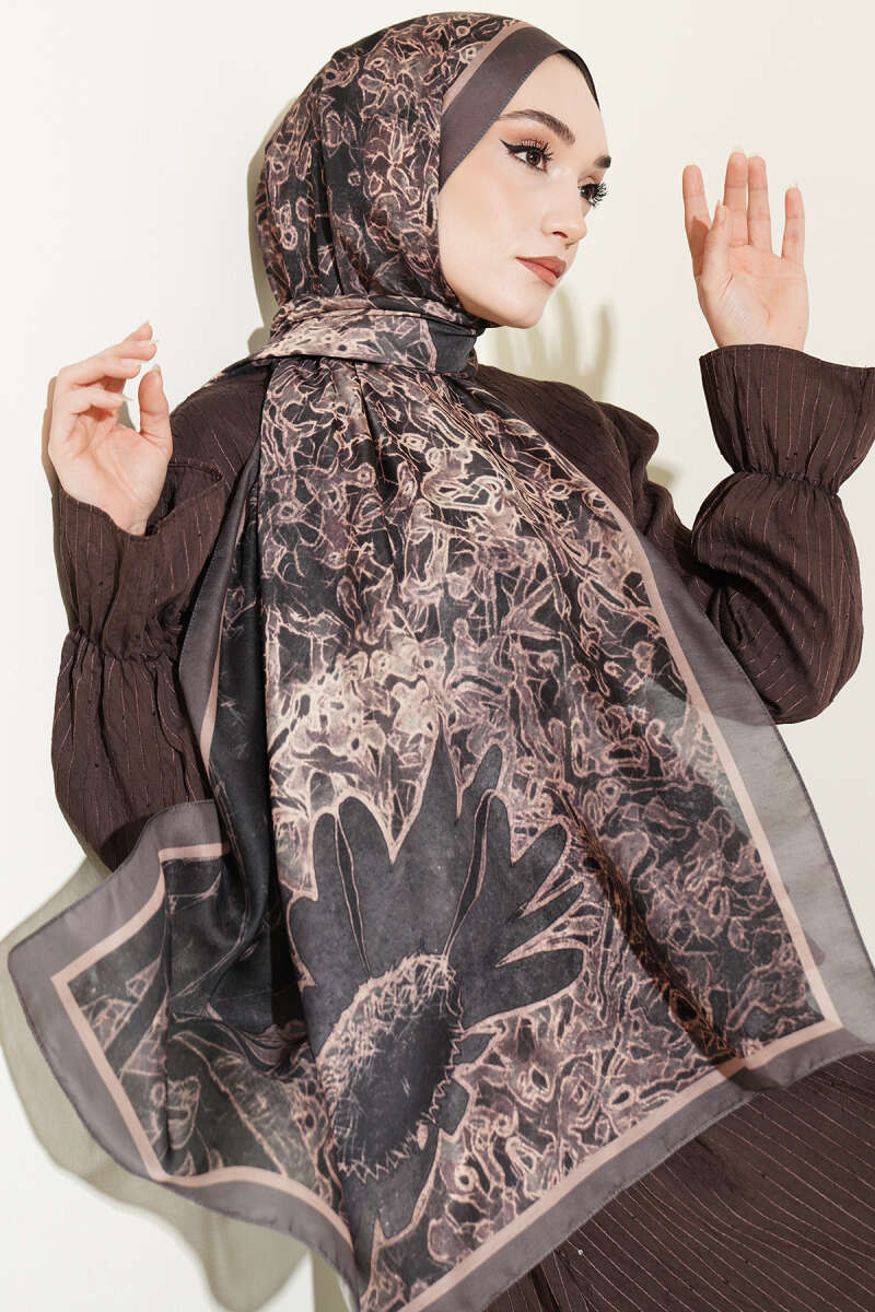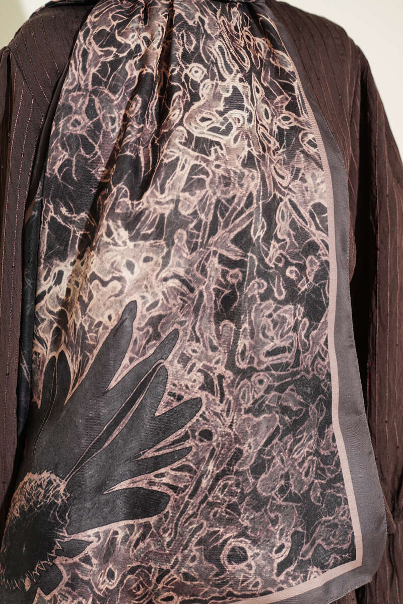 Fleur Desen Liva Modal Şal Siyah Vizon