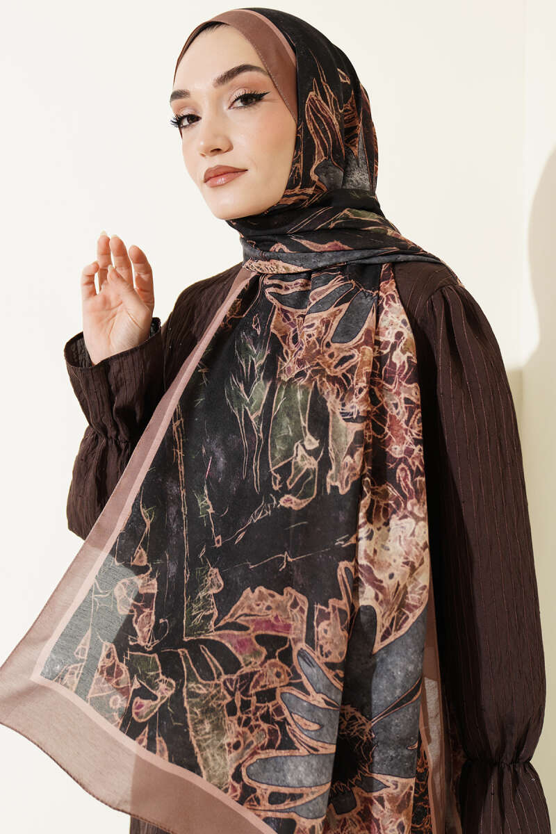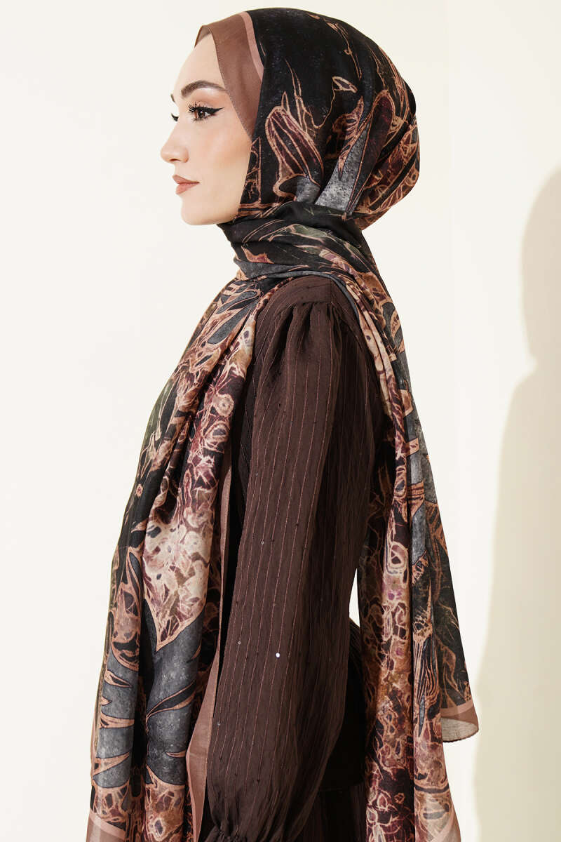 Fleur Desen Liva Modal Şal Taba