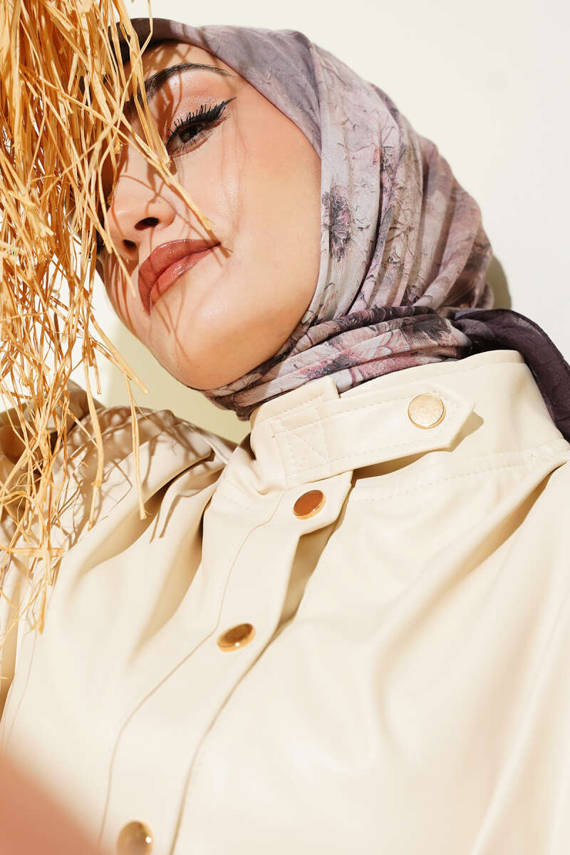 Şerit Geçişli Desenli Bambu Eşarp Bej