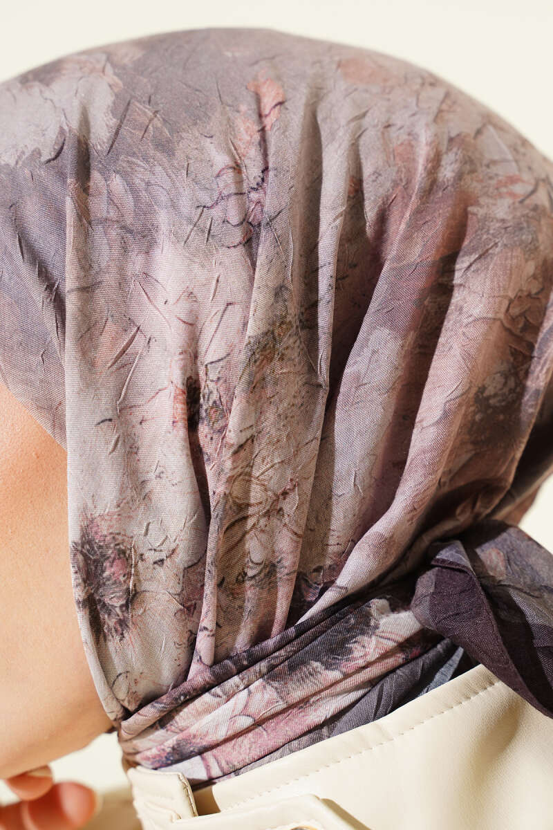 Şerit Geçişli Desenli Bambu Eşarp Füme