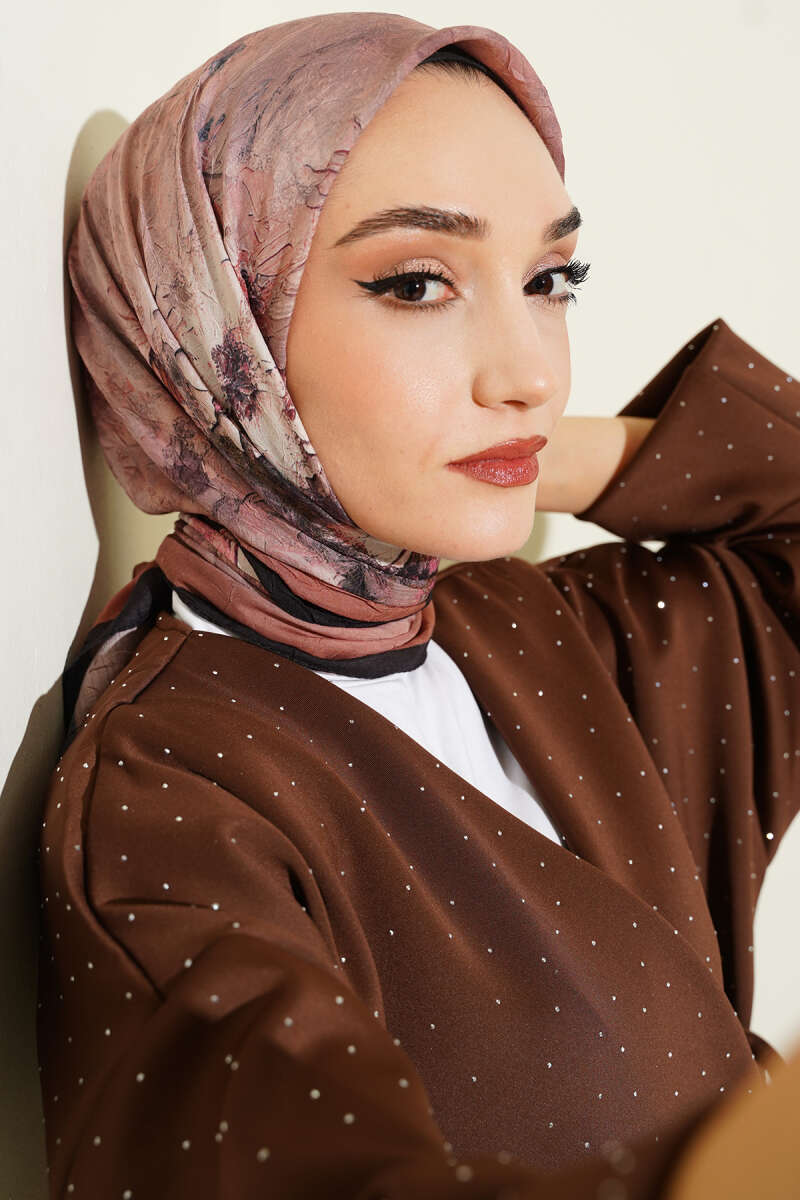 Çiçekli Soft Bambu Kraş Şal Camel