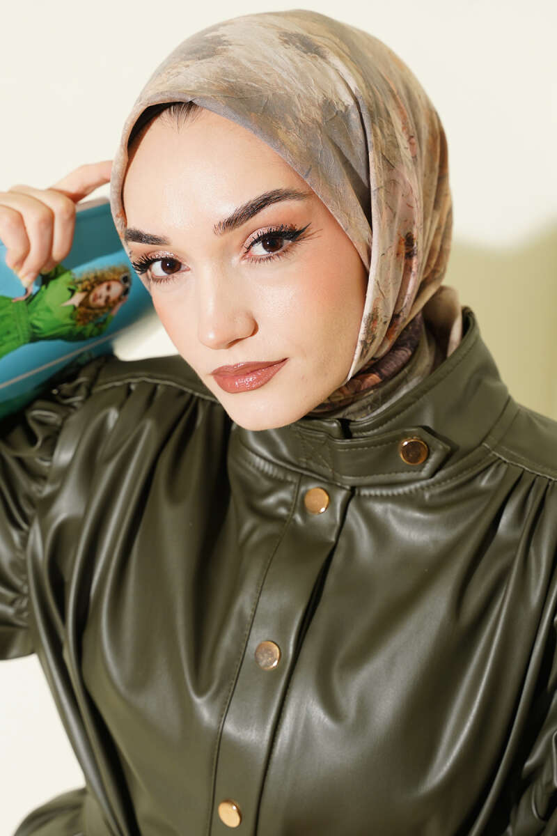 Flowers Bambu Kraş Eşarp Haki