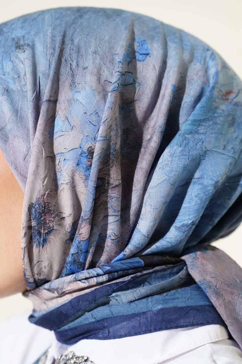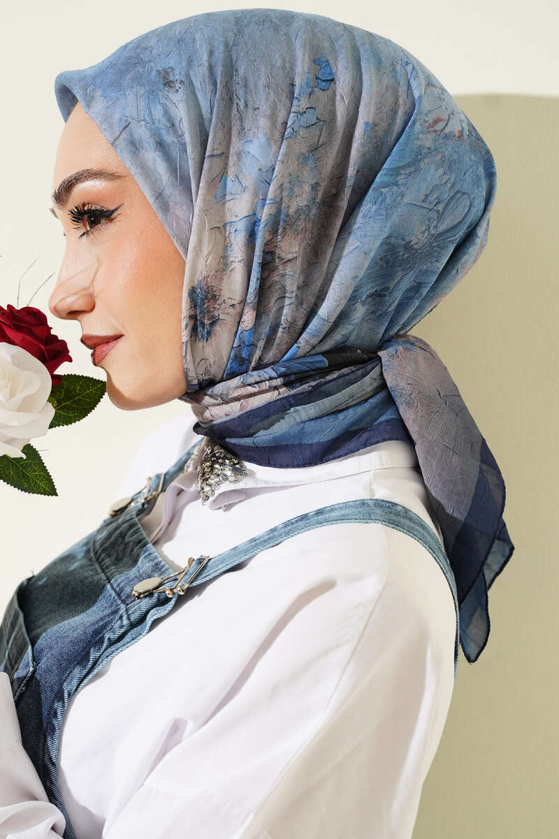 Flowers Bambu Kraş Eşarp Mavi