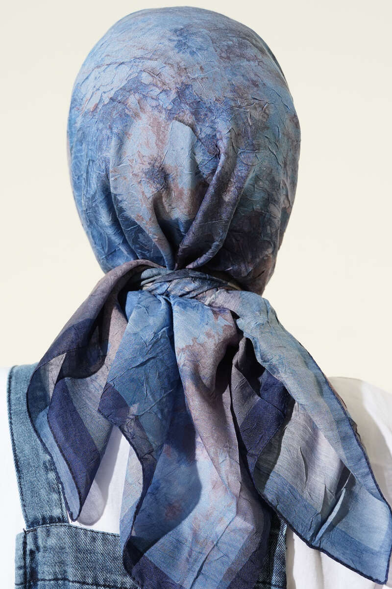 Flowers Bambu Kraş Eşarp Lacivert Bej