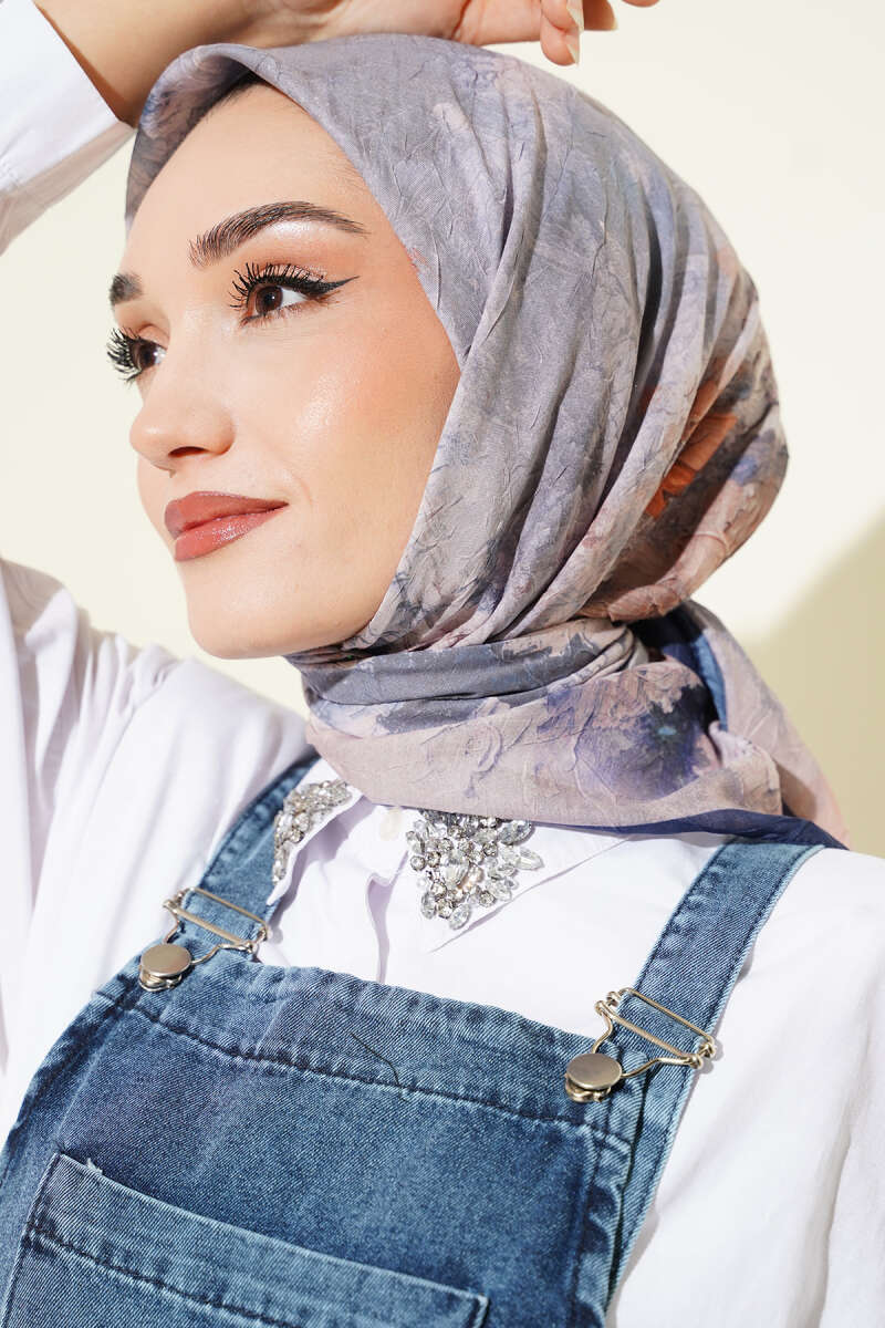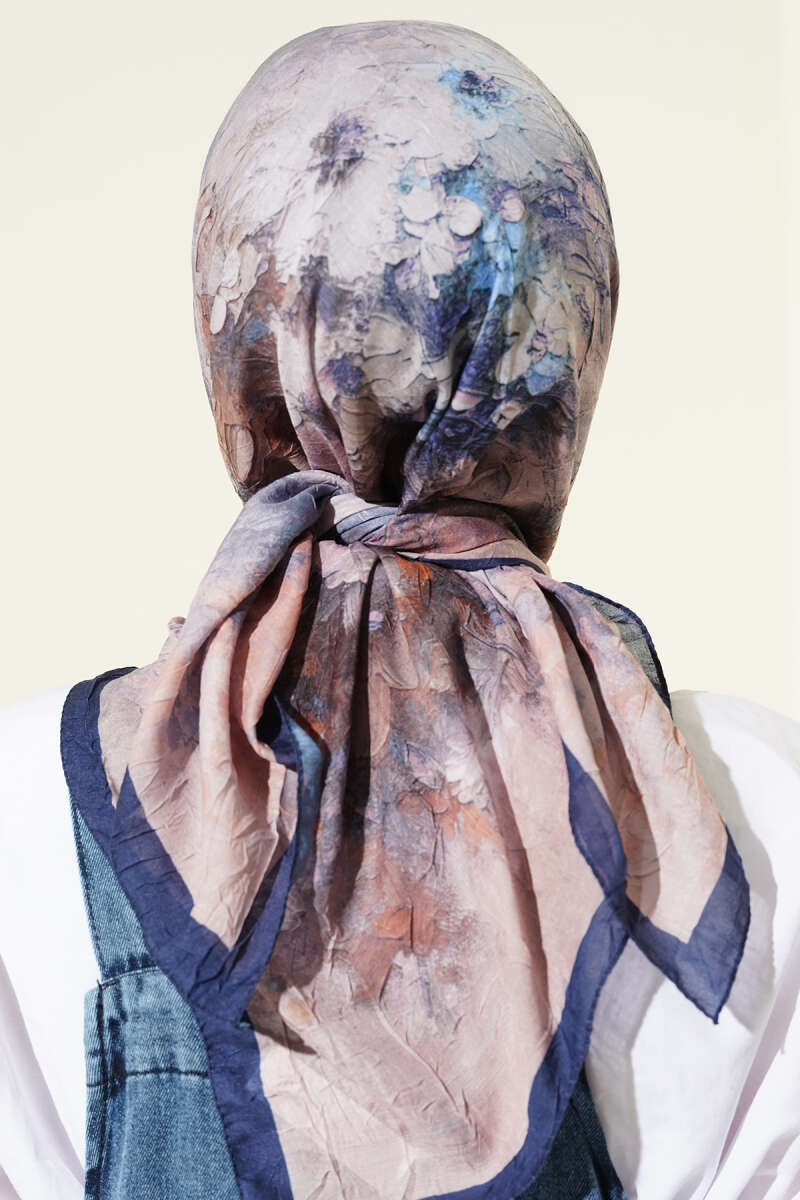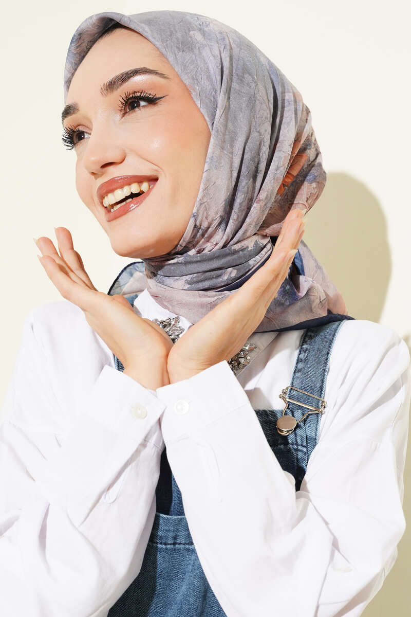 Flowers Bambu Kraş Eşarp Lacivert Bej