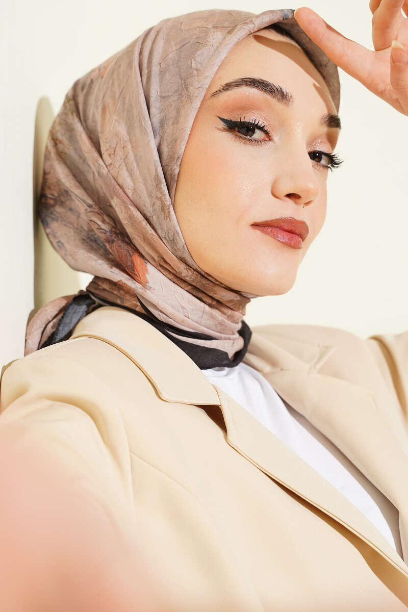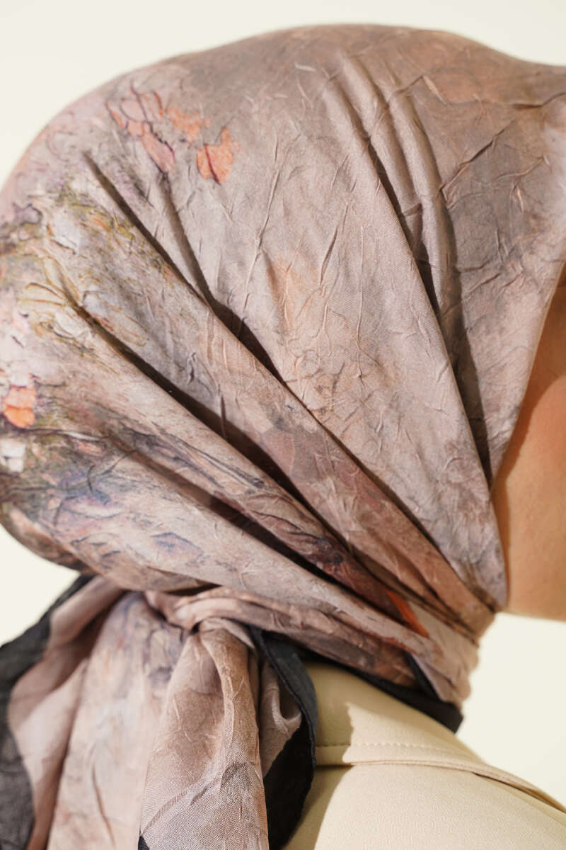 Çiçekli Soft Bambu Kraş Şal Camel