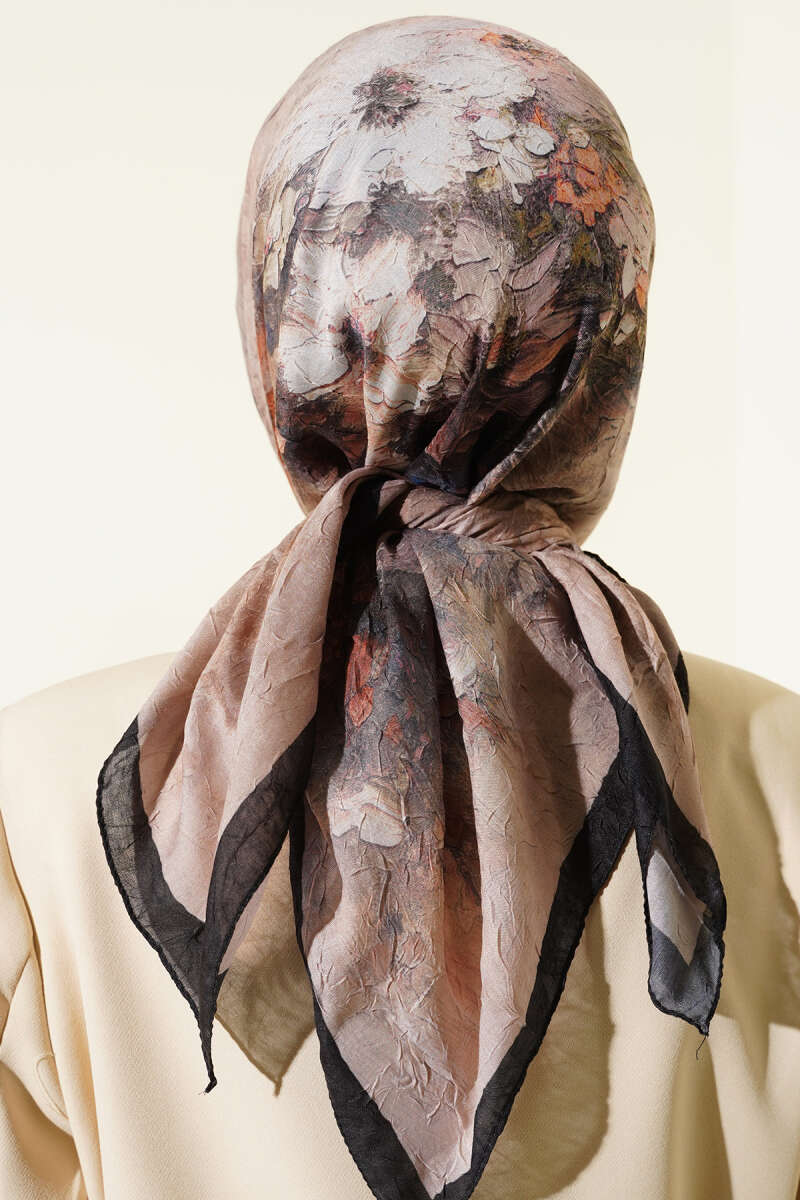 Çiçekli Soft Bambu Kraş Şal Bej