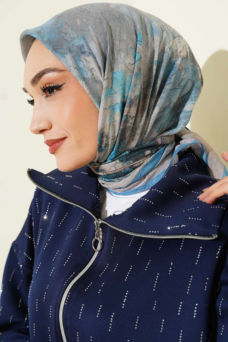 Çiçekli Soft Bambu Kraş Şal Haki