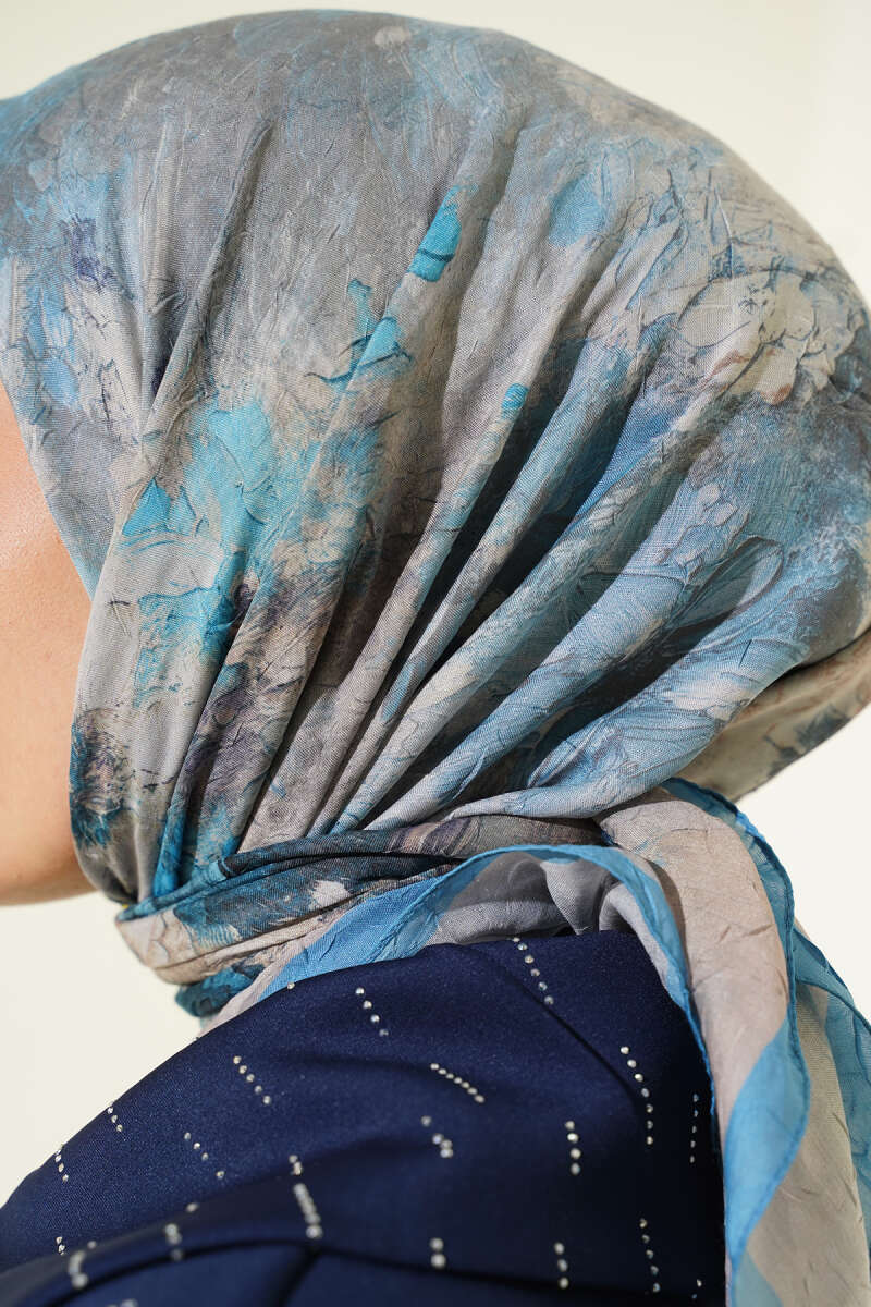 Çiçekli Soft Bambu Kraş Şal Gri