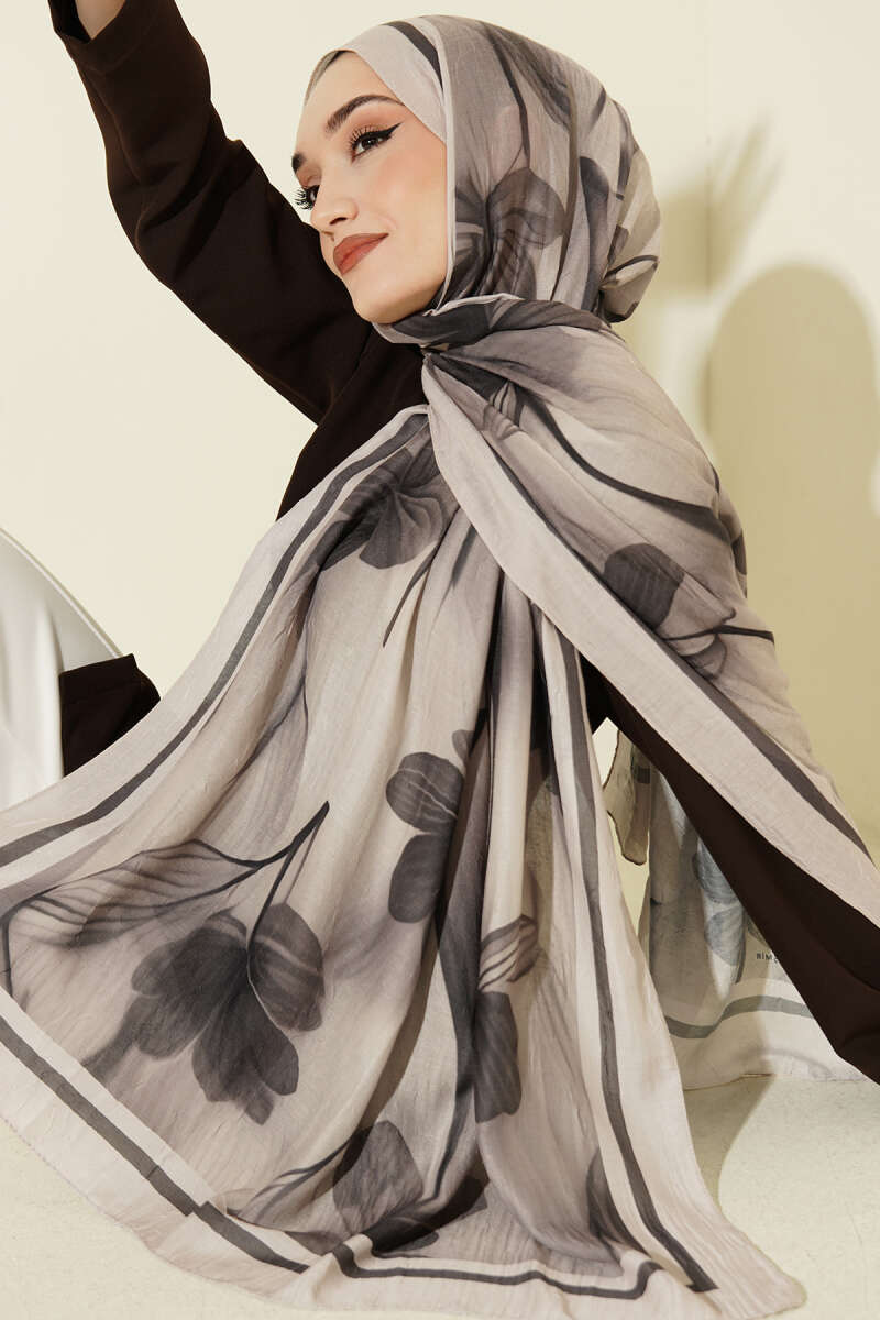 Camellia Desen Şal Taş Gri