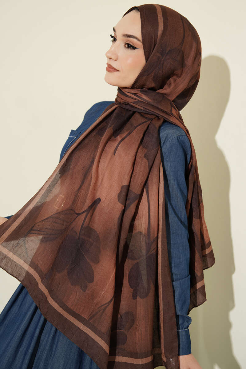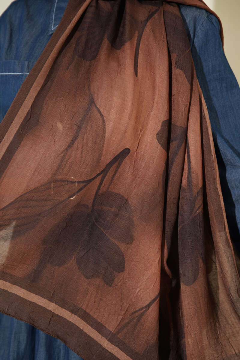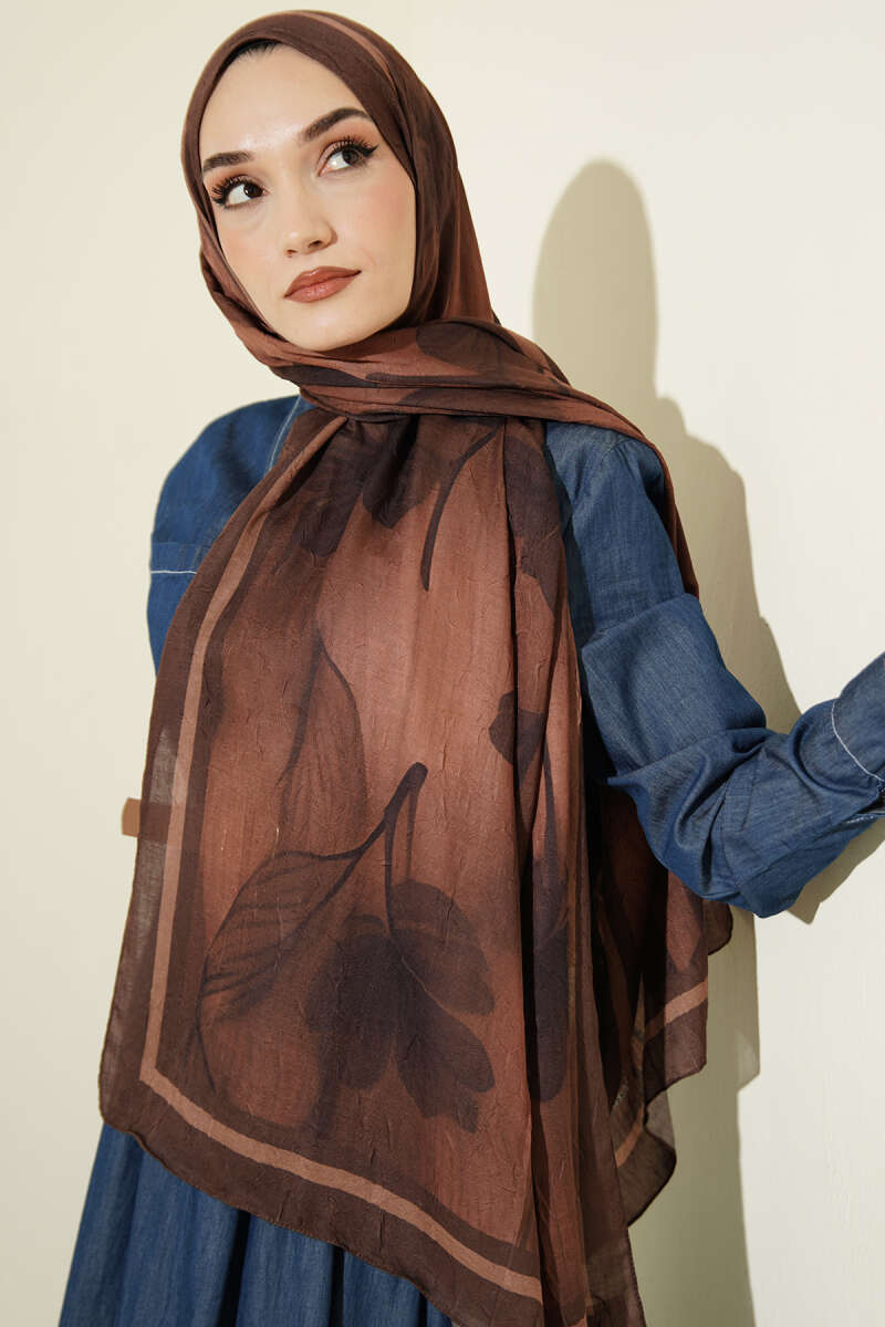Şeritli Bambu Kraş Eşarp Sütlü Kahve